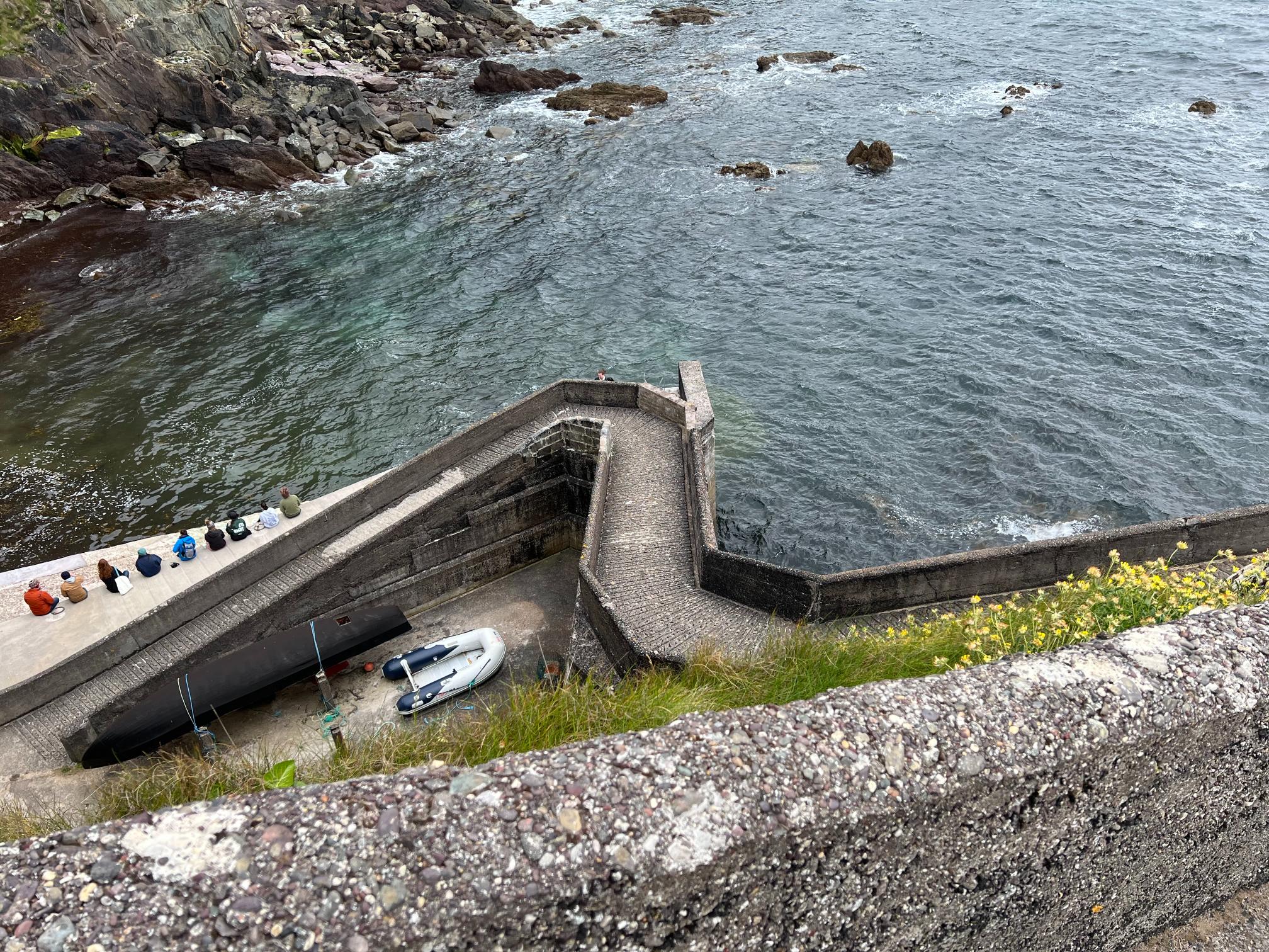 The wind was at its worst at Dunquin Pier. I forgot to mention that a large percentage of the population of the Dingle Peninsula are Gaelic speakers, and that each of the placenames I’m mentioning also has its proper Gaelic equivalent. Dunquin Pier, for example, is Cé Dhún Chaoin. Travellers’ notes suggested it was one of the strangest piers in Ireland. It was here the wind was at its absolute strongest. At one stage, when I ventured out into an open space, I was blown back a step or two and it was a struggle to move forward. I turned to Marg about five metres behind me and suggested that she didn’t come any closer. We both sought somewhere with a little shelter from the strongest gusts. Rod and Cornelia walked down the steep path to the pier. Marg and I didn’t go. Rod supplied the first photo. It must have been challenging bringing goods up from the pier in earlier times. The area around Dunquin Pier was also a filming location for ‘Star Wars: The Last Jedi’.