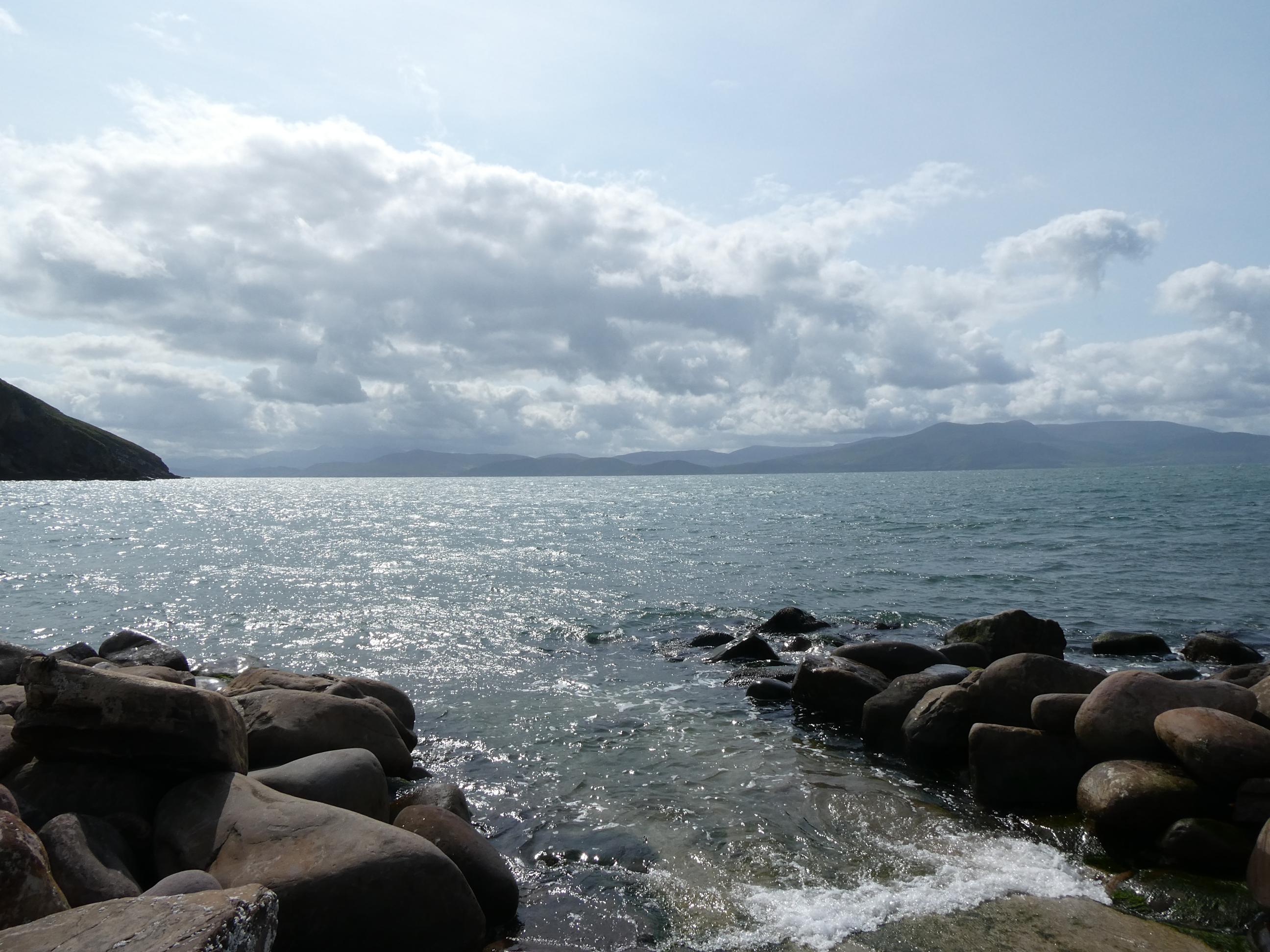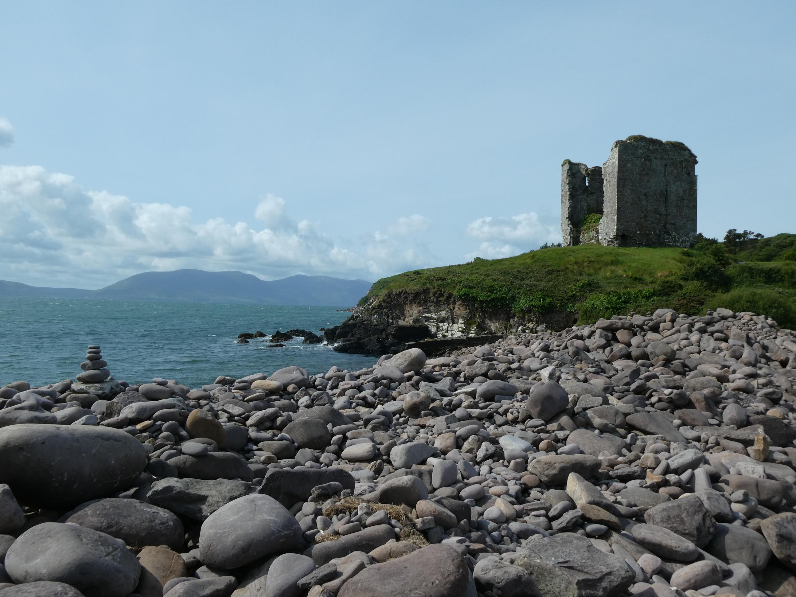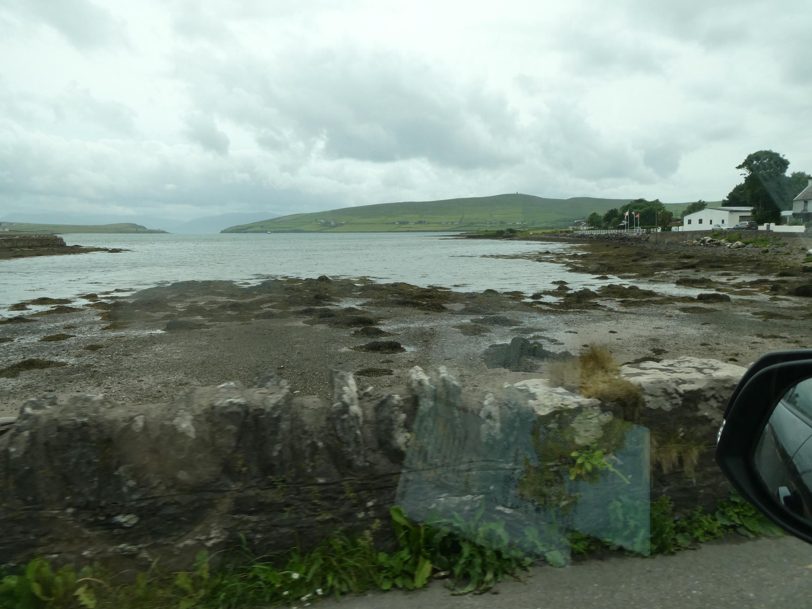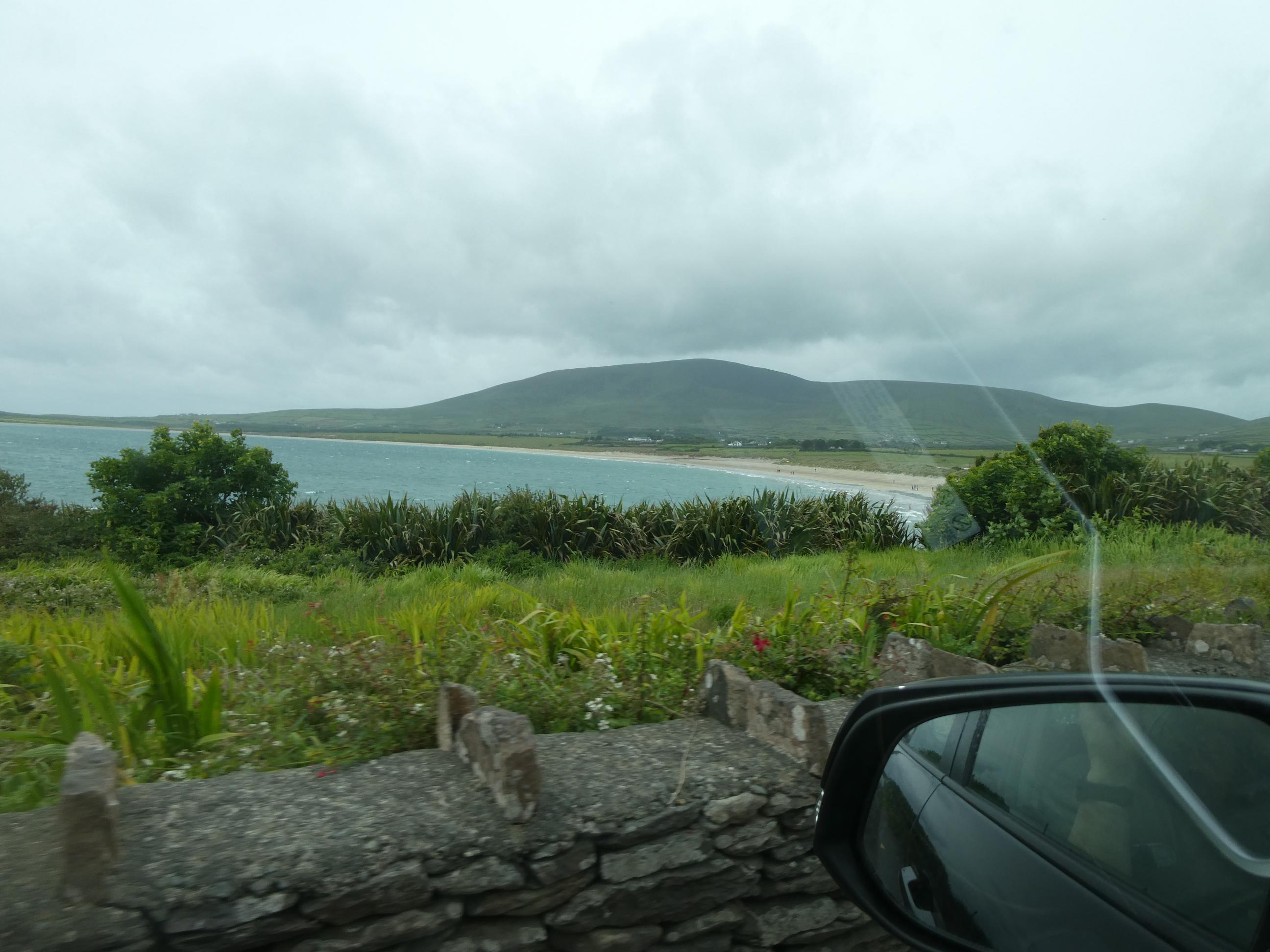 Our day began with a photo stop at Ross Castle, just a short distance from our accommodation in Killarney. We had planned to do that the previous day, but when we got caught up in the traffic jam connected with the free concert it would have been impossible. The sun was out and the day looked full of promise. We headed north-west through Castlemaine, birth place of the ‘Wild Colonial Boy’, which is acknowledged as you drive into the town. From Castlemaine, we drove west towards Inch Beach. To our immediate left was Castlemaine Harbour, and across the water was the Ring of Kerry road we drove yesterday.