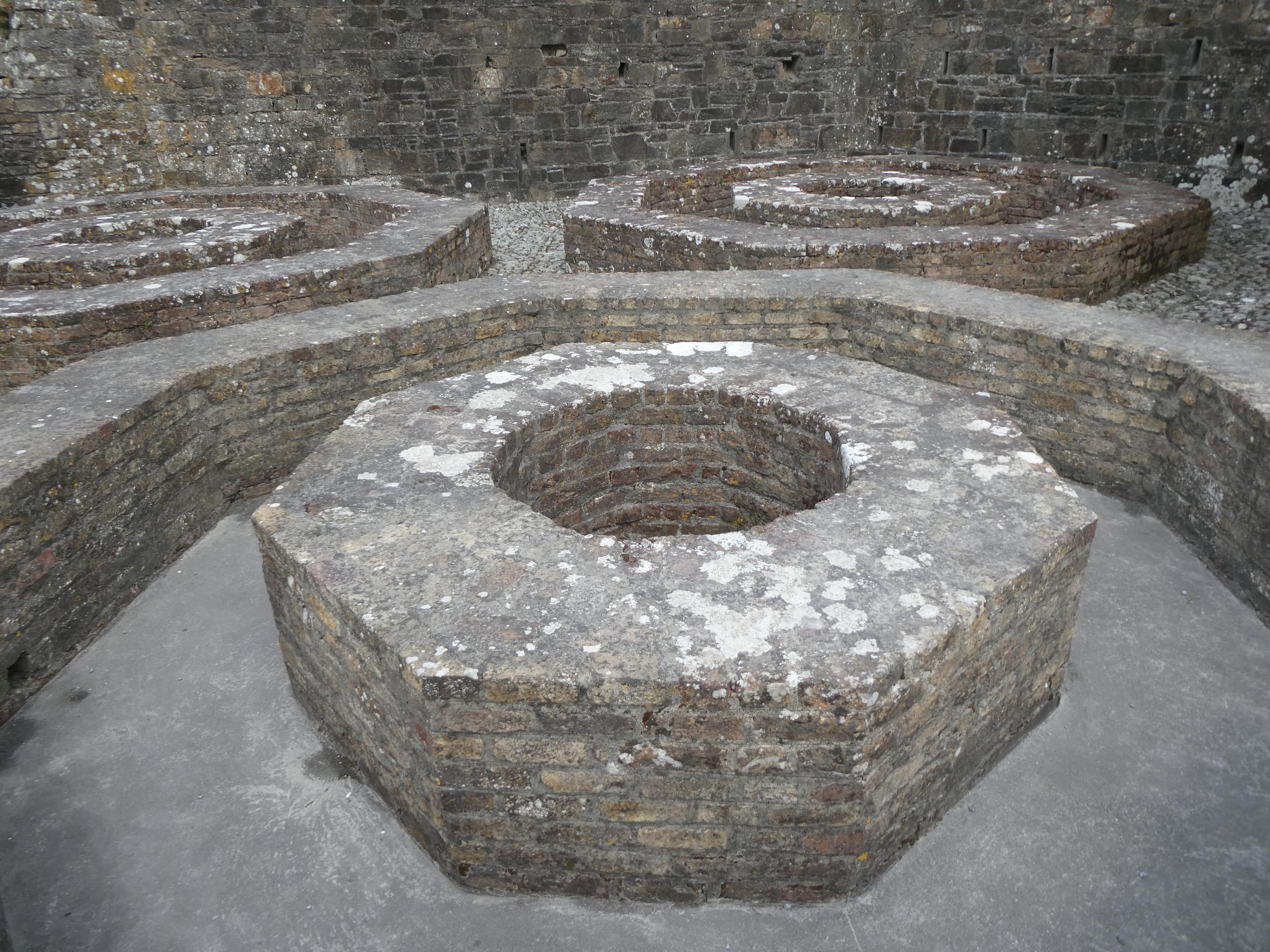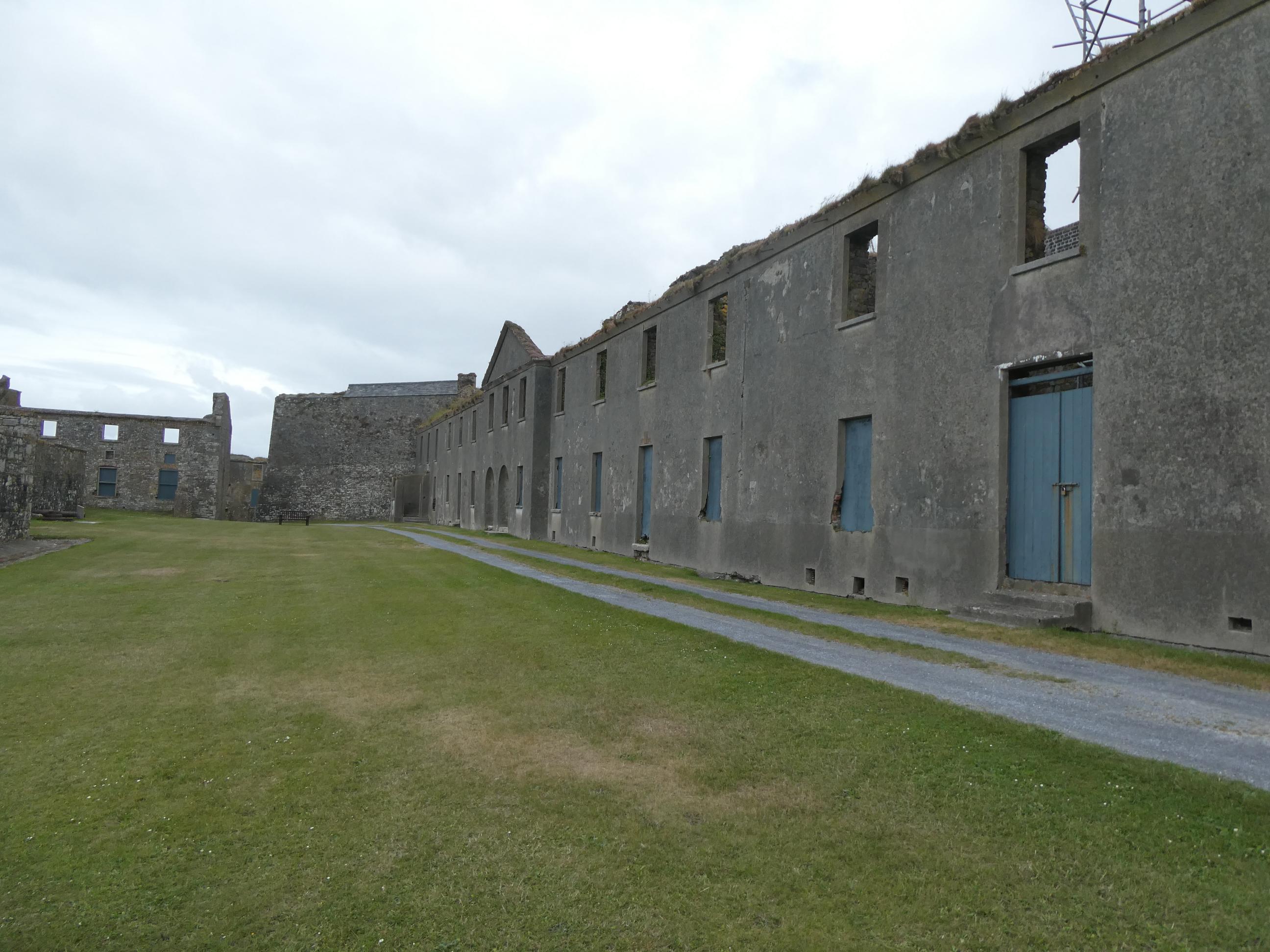 Charles Fort is a former British military post. It sits on a hill overlooking the entrance to Kinsale Harbour. It was built during the late 1600s, when England was fighting wars with the French, the Spanish and the Dutch, and was on the alert for a naval attack. It feared a foreign navy might sail in through the heads and destroy its ships at anchor in the harbour. The fort was constructed in the shape of a five pointed star, with a bastion on each point. Three of the bastions faced the water, from where an attack was considered most likely. Two more faced the land, but none faced the one hill alongside the fort, and that is where an attack came in 1690. After a 13-day siege, one wall was breached by cannon fire from the high ground, forcing the garrison holed up inside the fort to surrender. British troops were stationed here for the next 240 years. The fort is now in ruins, but the strong ramparts still stand and some of the main structures inside the fortress walls are still largely intact.