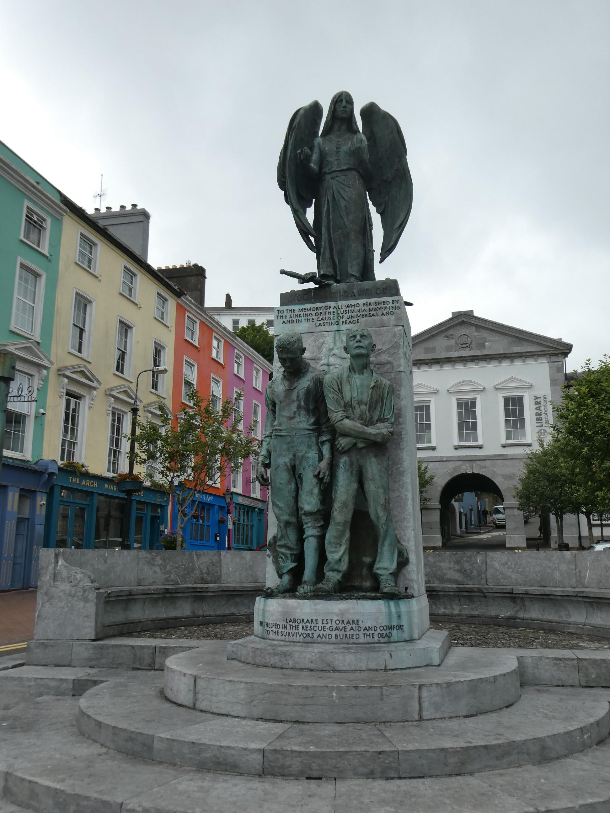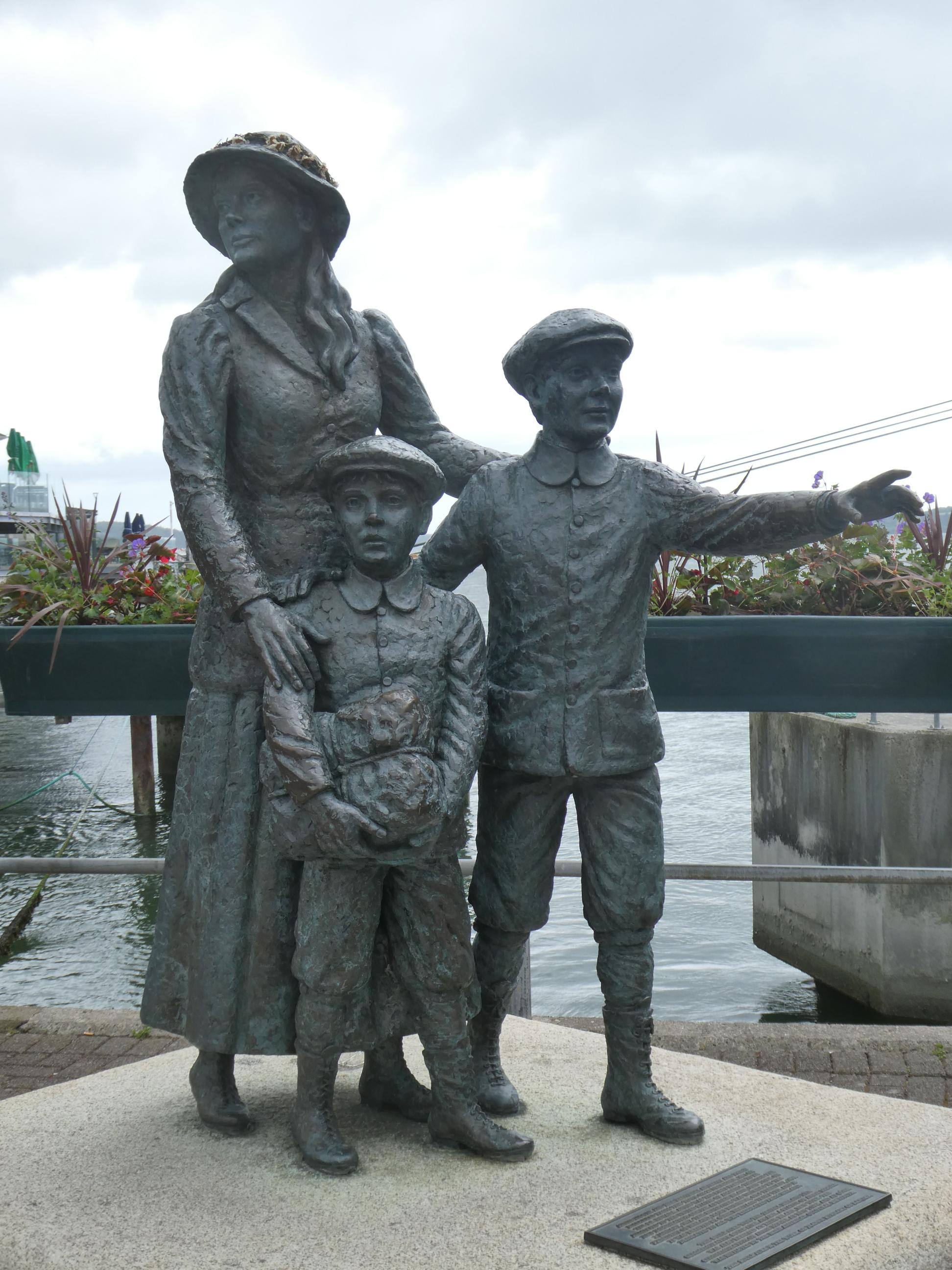 Cobh must have a very deep harbour, as a monstrous cruise ship was docked here when we arrived today, dwarfing the buildings alongside it. We walked down to the Heritage Centre to see the wonderful statue of 15-year old Annie Moore, who was the first Irish immigrant to be processed upon arrival at New York’s Ellis Island. She’s casting one last wistful glance back at her native Ireland before making the sea voyage to a new life in America. It’s one of my favourite statues. I like the fact that Annie was also looking away from the cruise ship, as if she wanted no part of it.