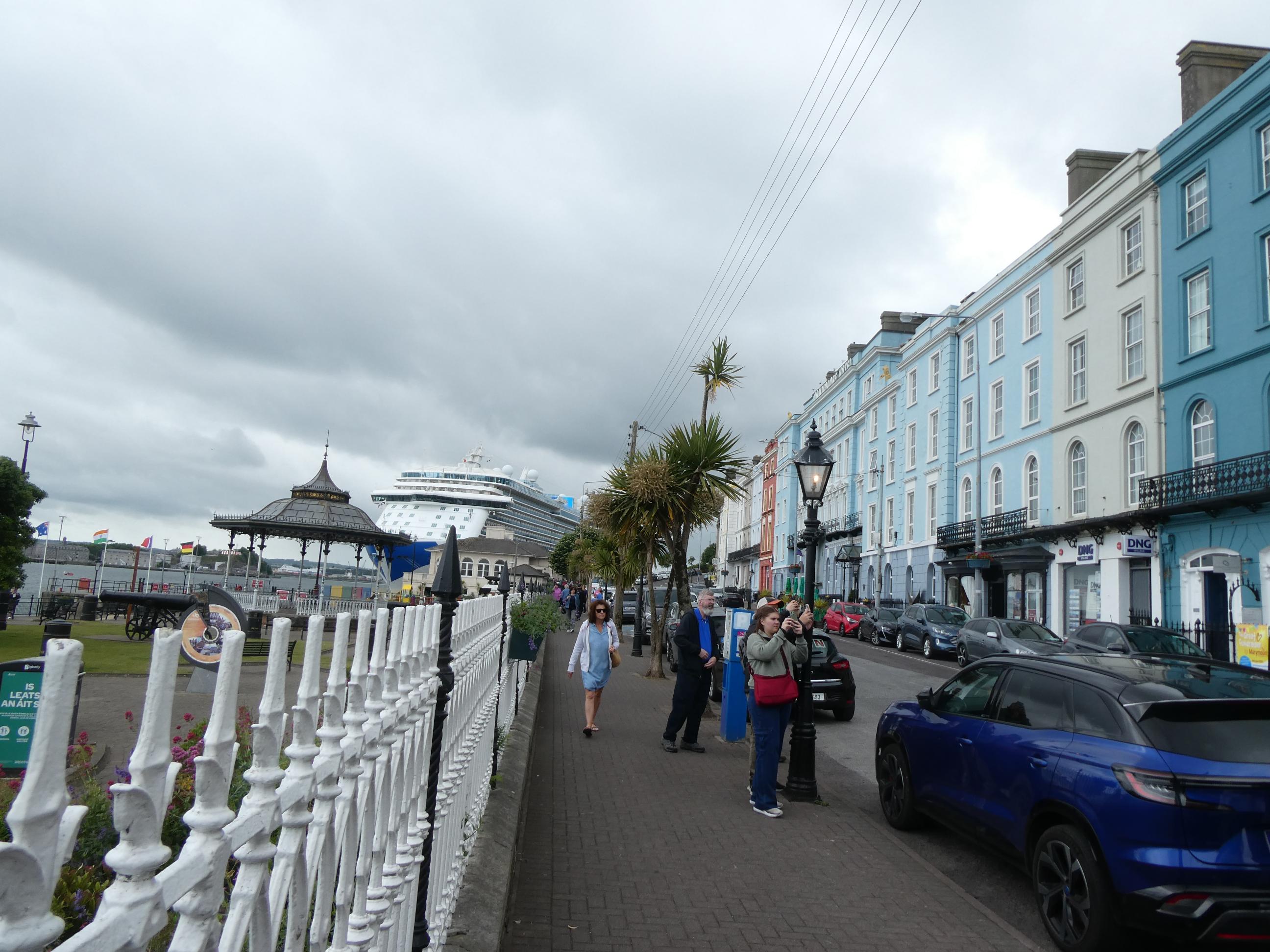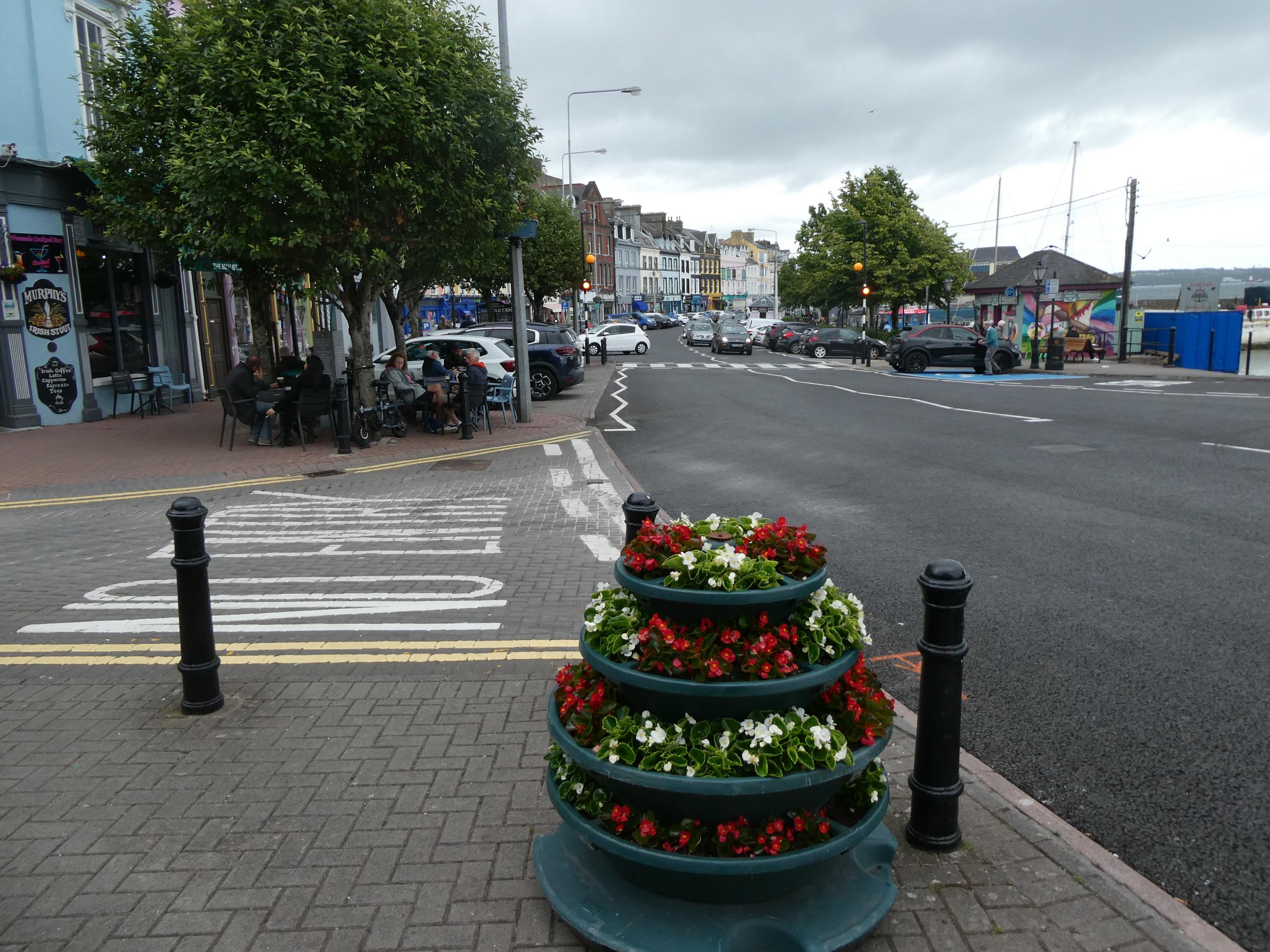 We parked near the cathedral and walked down the steep slope along a row of identical coloured houses. Marg and I visited Cobh six years ago, but only had a brief glimpse of them back then, so it was good to have a better look at them today. We walked along the waterfront. I think it’s a really appealing place, with colourful buildings, ice cream vans, buskers, statues, murals, a rotunda and floral displays all brightening up the place. The bars and cafes looked like great places to stop, but time was pressing and we didn’t have time for that, unfortunately. I guess the only thing about Cobh that doesn’t appeal to me is its steep hills.