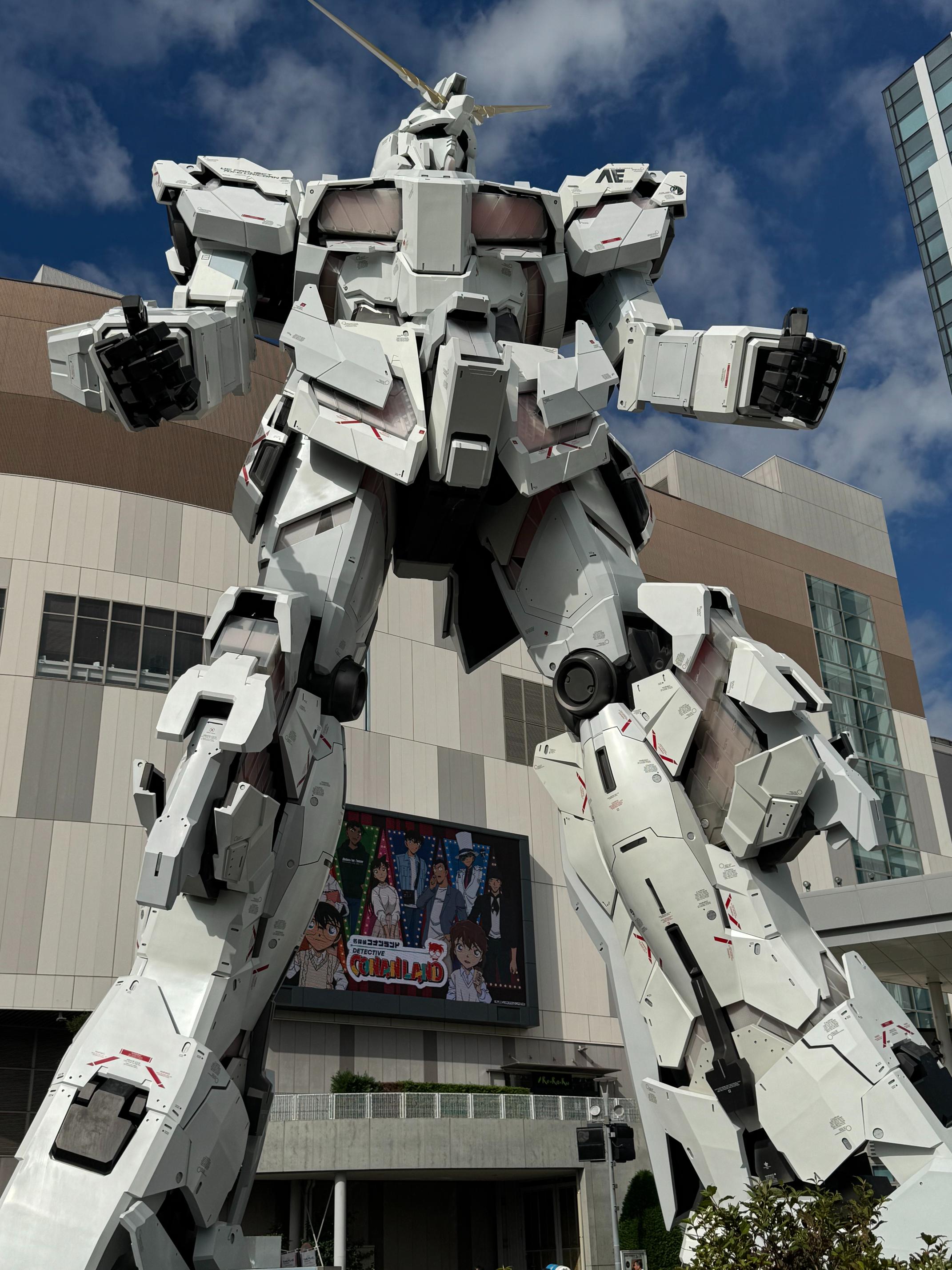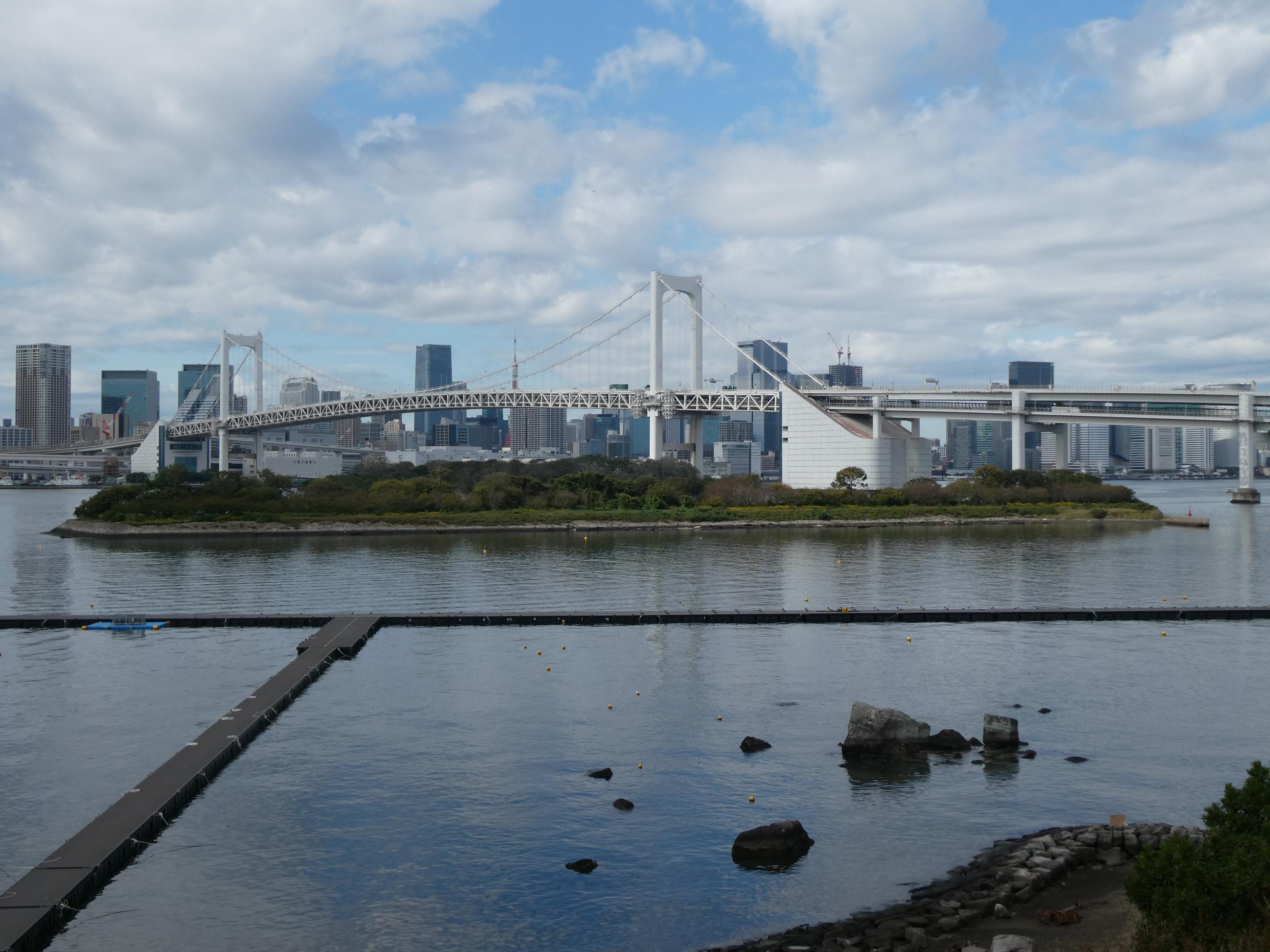 We drove across the impressive suspension bridge with the unusual name of Rainbow Bridge (it’s white) that spans a stretch of Tokyo Bay between Shibaura Pier and Odaiba. Odaiba is an entertainment hub on a man-made island in the bay. I didn’t expect to see the Statue of Liberty there. I can’t imagine Donald Trump will be happy about that if he finds out. Anyway, as I’ve never been to New York to see the real thing, I guess Tokyo’s copy will have to suffice. At one entrance to a large shopping and entertainment complex, a gigantic Transformer stood guard. We had a great buffet lunch at the Hilton, with a wonderful view out over the bay.