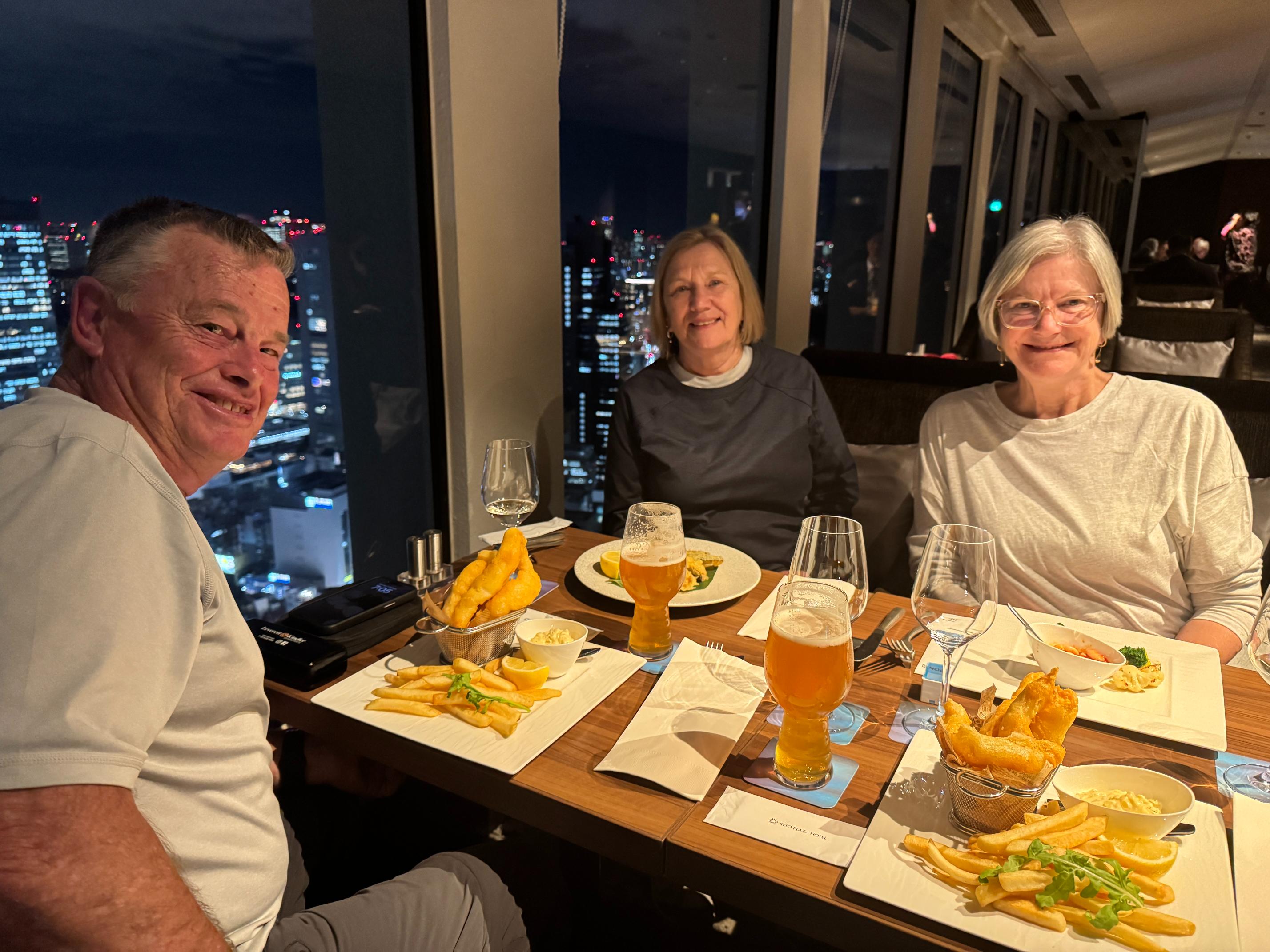 We caught the lift up to the 45th floor of the other tower of our hotel to the Sky Lounge for dinner, with the lights of Tokyo as our backdrop. It was really enjoyable up there, and a good place to wind up another interesting day.