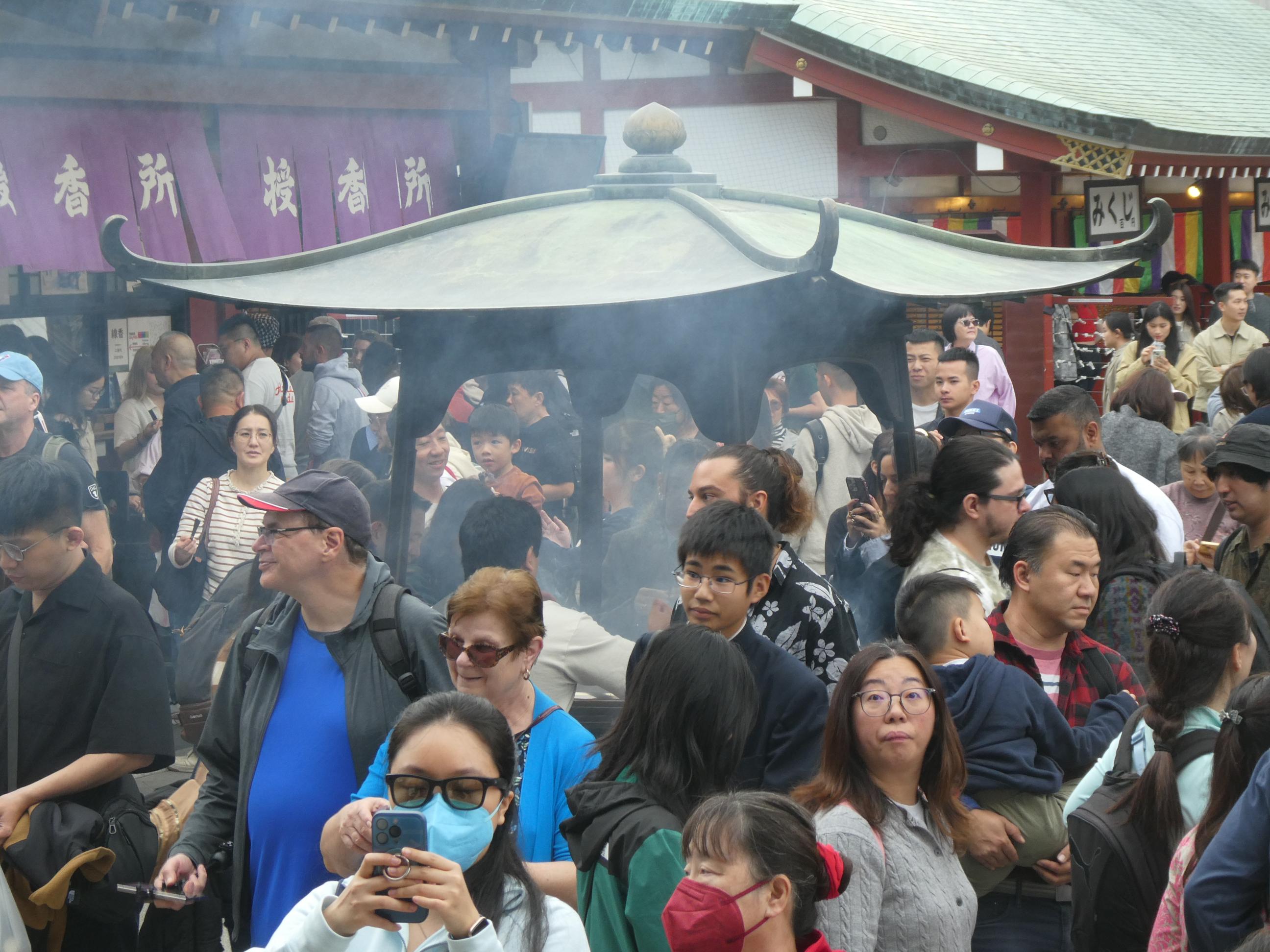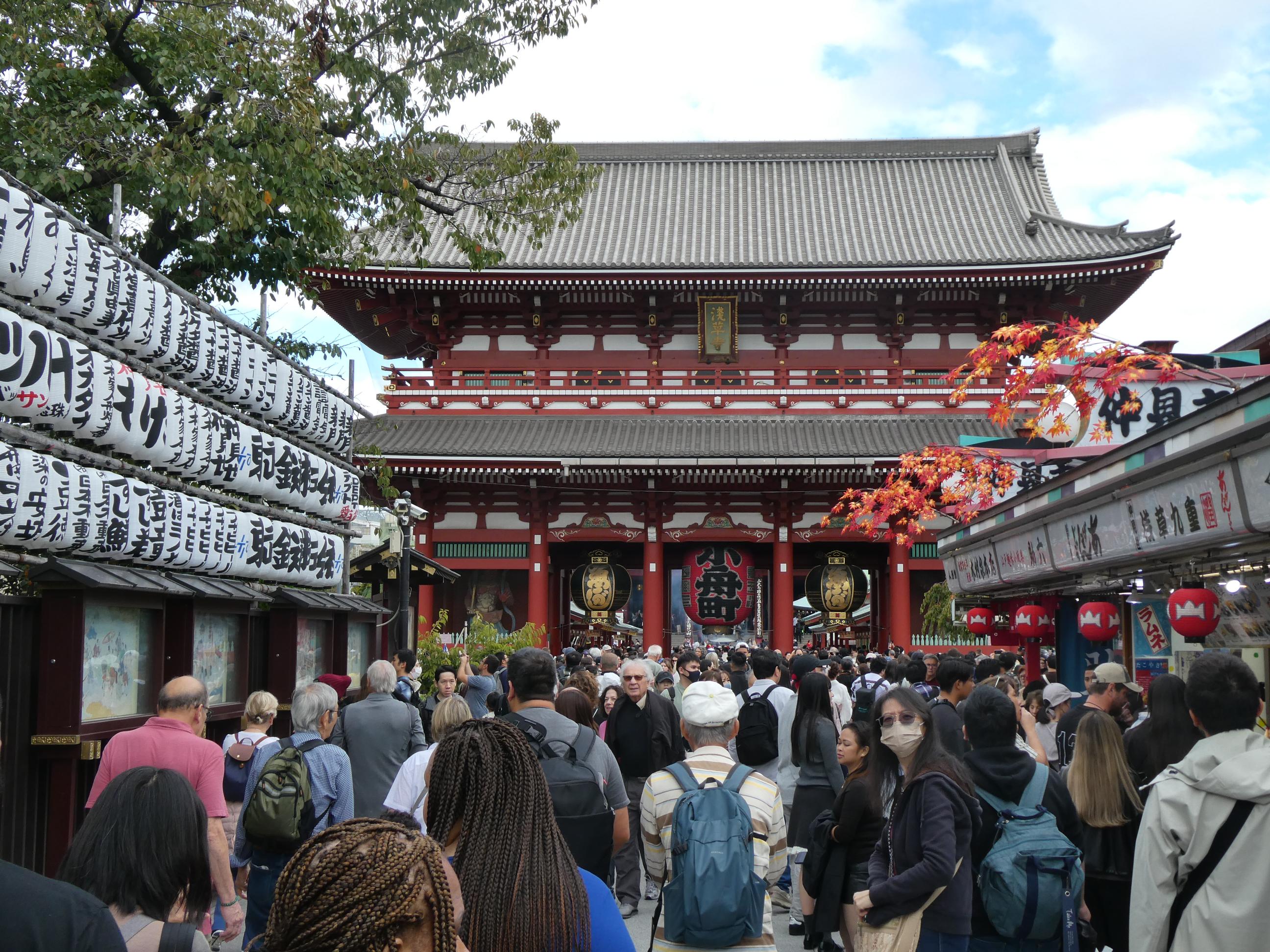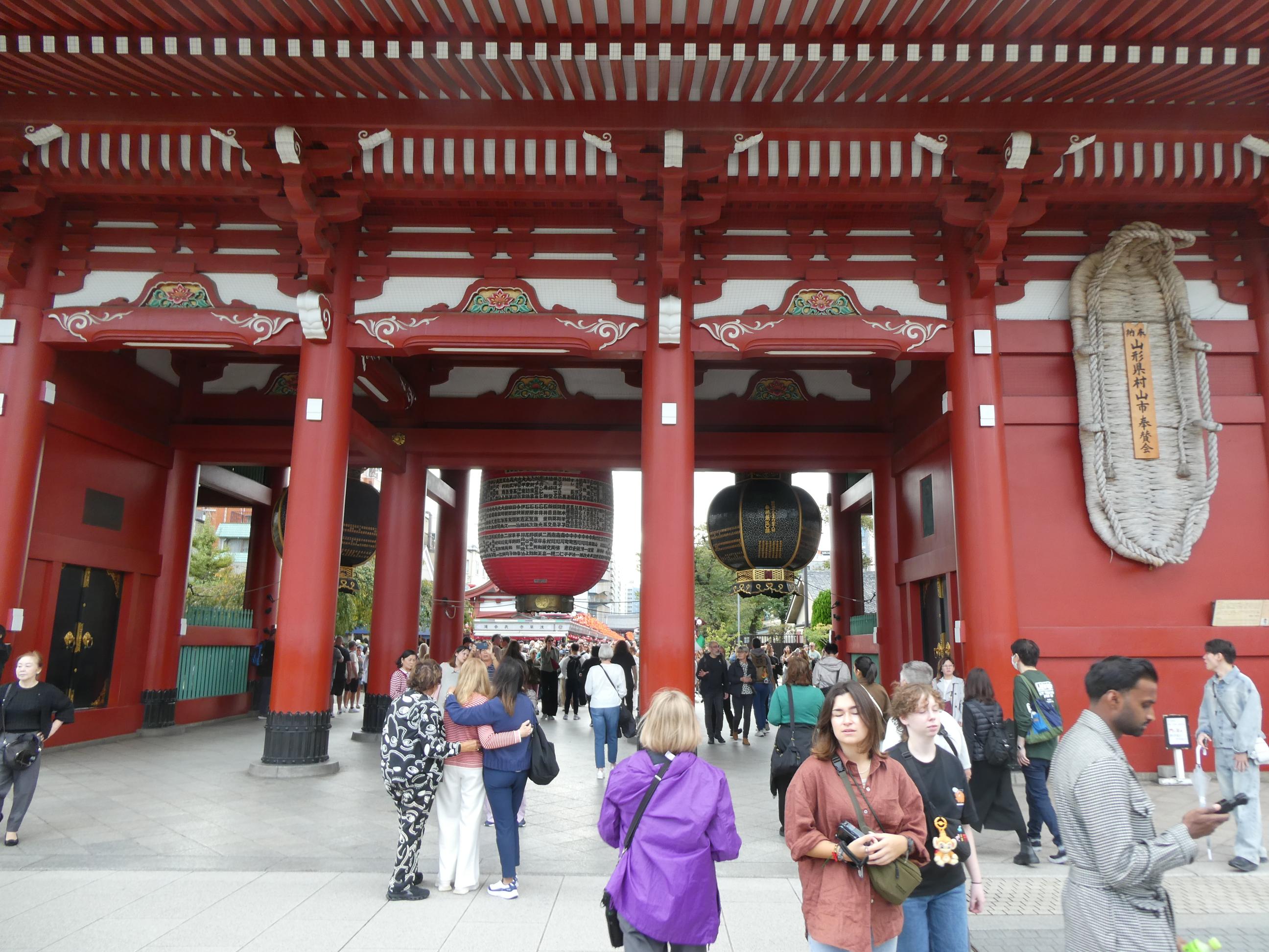 Immediately outside the temple grounds is Nakamise Shopping Street, which was teeming with people, locals and visitors alike. The size of the crowd forced us to take our time and move along slowly and steadily with the flow. We didn’t stop to buy anything, although Marg and Theresa, who are both keen to find appropriate gifts for the grandkids, were interested in a few items. There was never any pressure from any of the vendors, which made interacting with them a good deal more pleasant than other parts of Asia I’ve visited. Eventually, both Marg and Theresa discovered a shop selling scarves that they loved, but these were their only purchases for the entire morning.