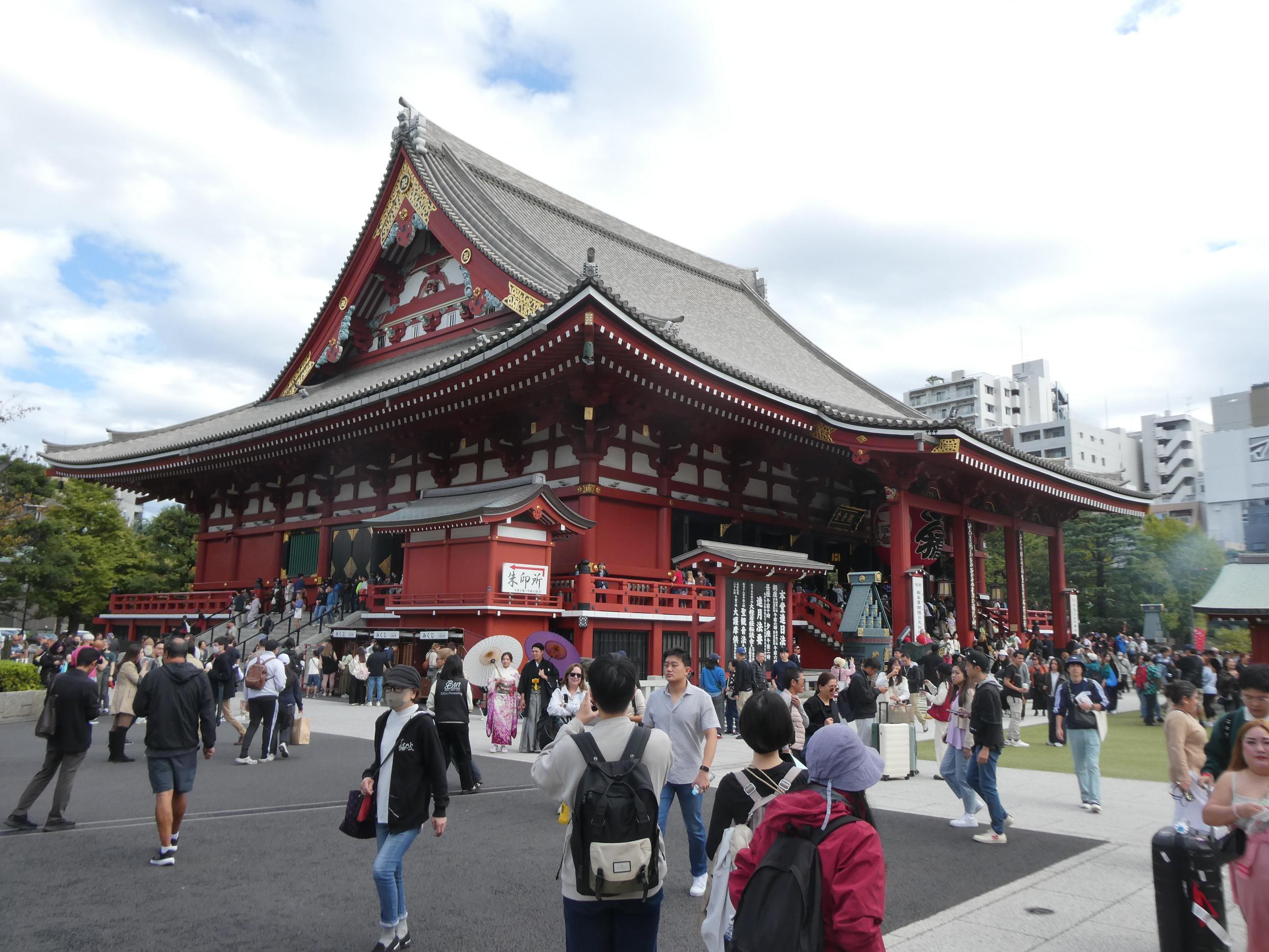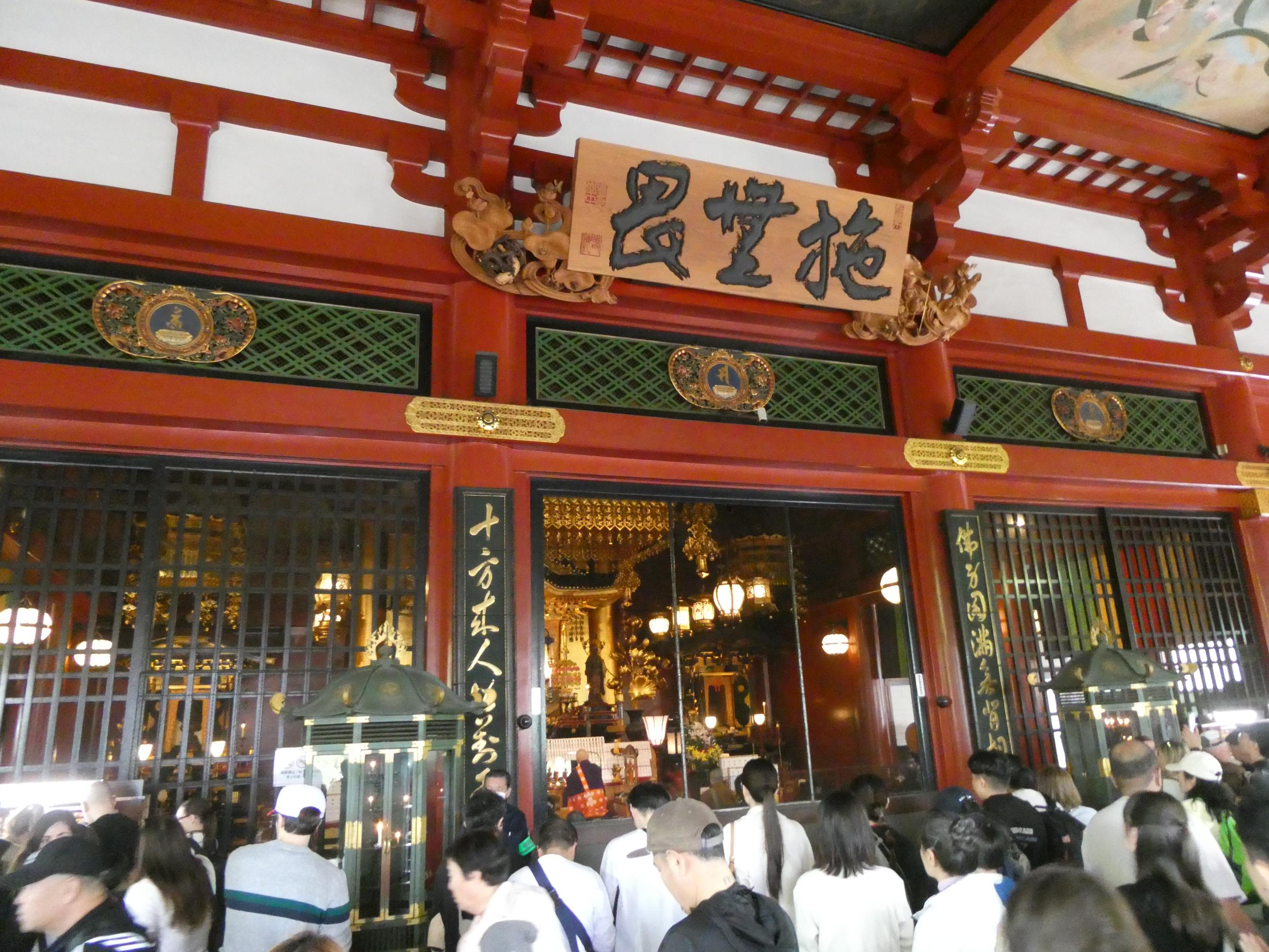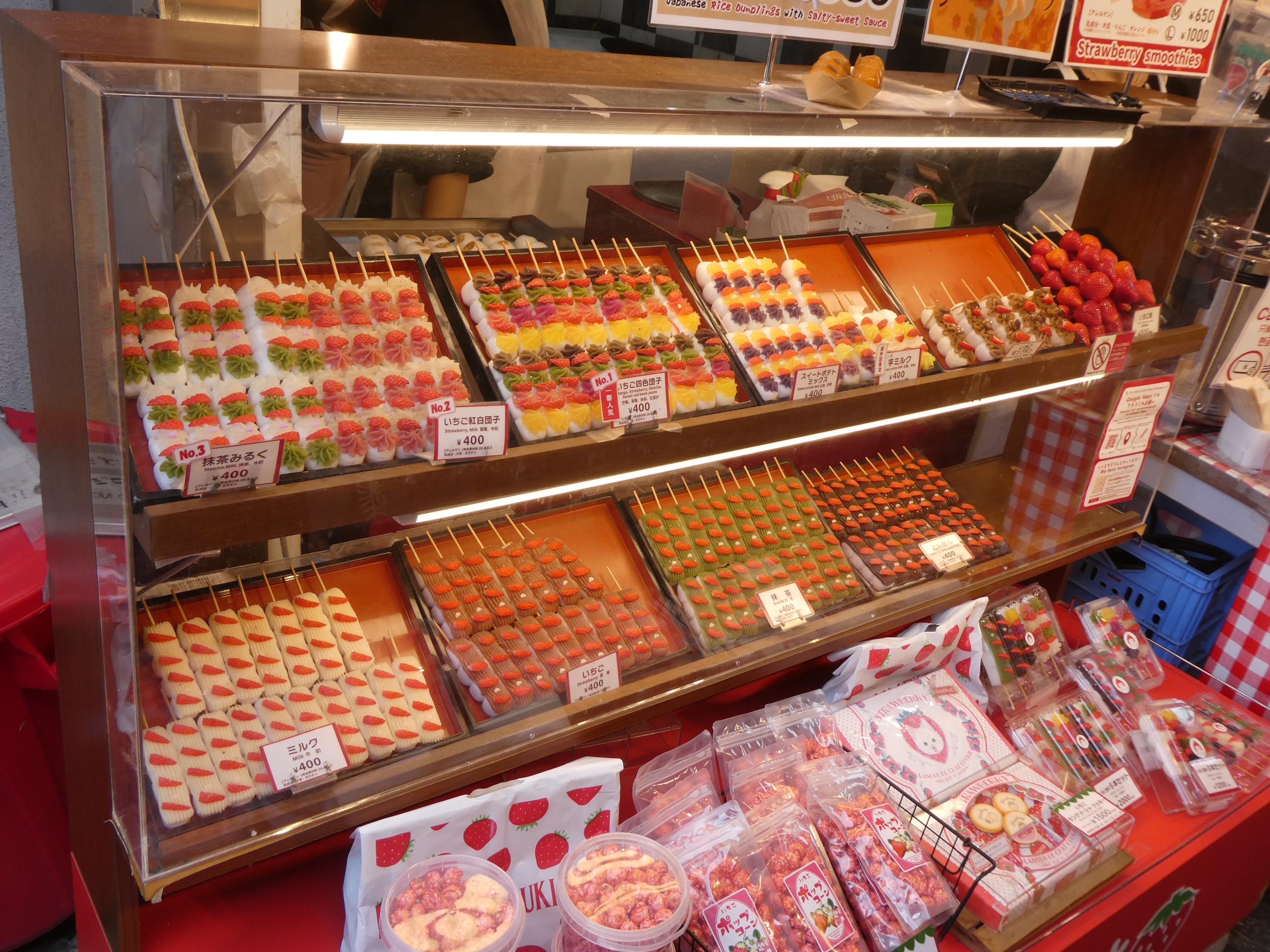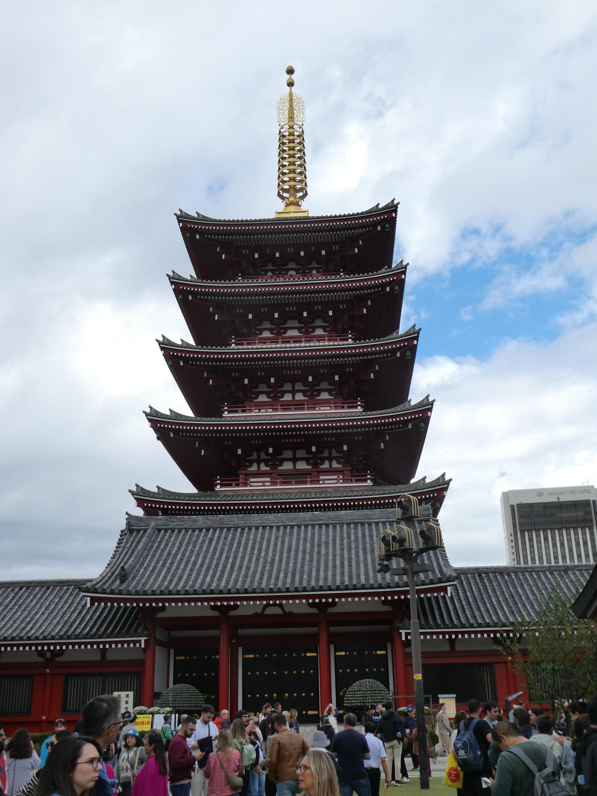 Immediately outside the temple grounds is Nakamise Shopping Street, which was teeming with people, locals and visitors alike. The size of the crowd forced us to take our time and move along slowly and steadily with the flow. We didn’t stop to buy anything, although Marg and Theresa, who are both keen to find appropriate gifts for the grandkids, were interested in a few items. There was never any pressure from any of the vendors, which made interacting with them a good deal more pleasant than other parts of Asia I’ve visited. Eventually, both Marg and Theresa discovered a shop selling scarves that they loved, but these were their only purchases for the entire morning.