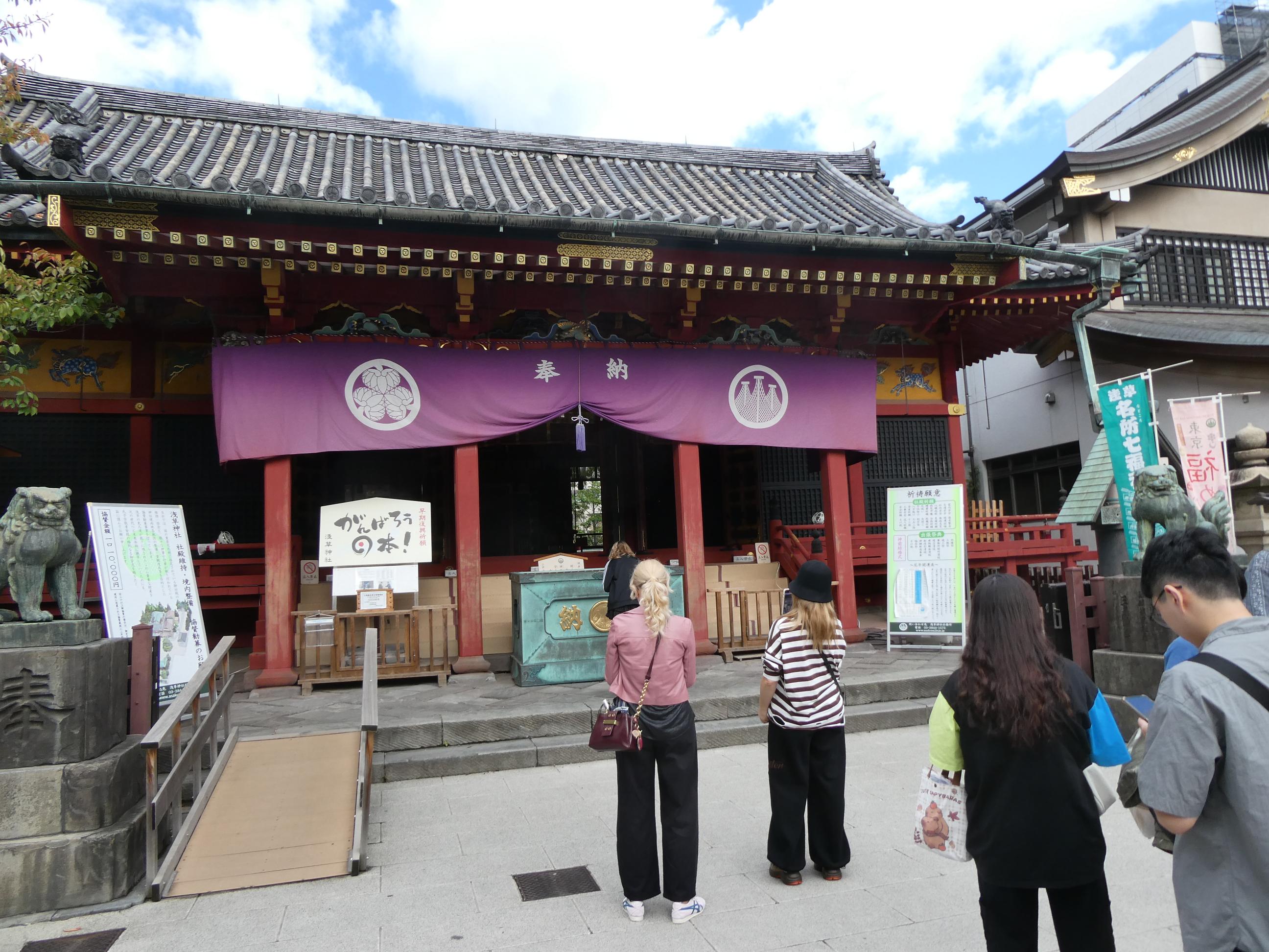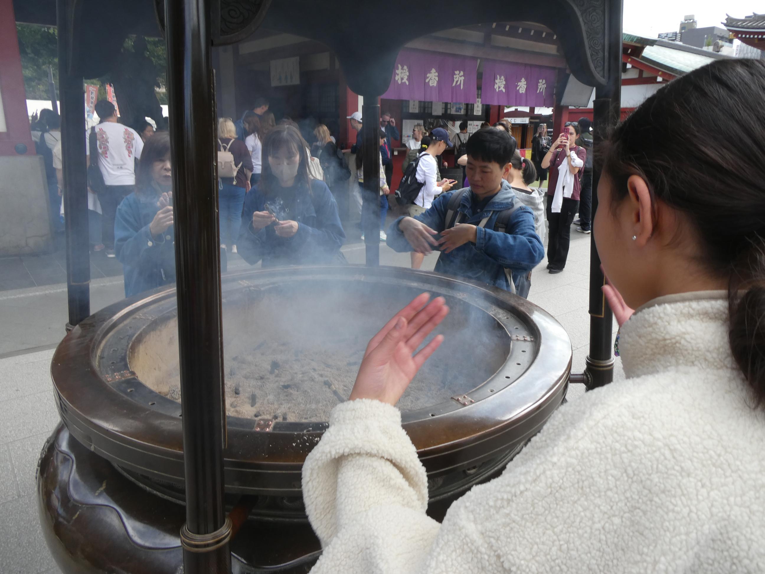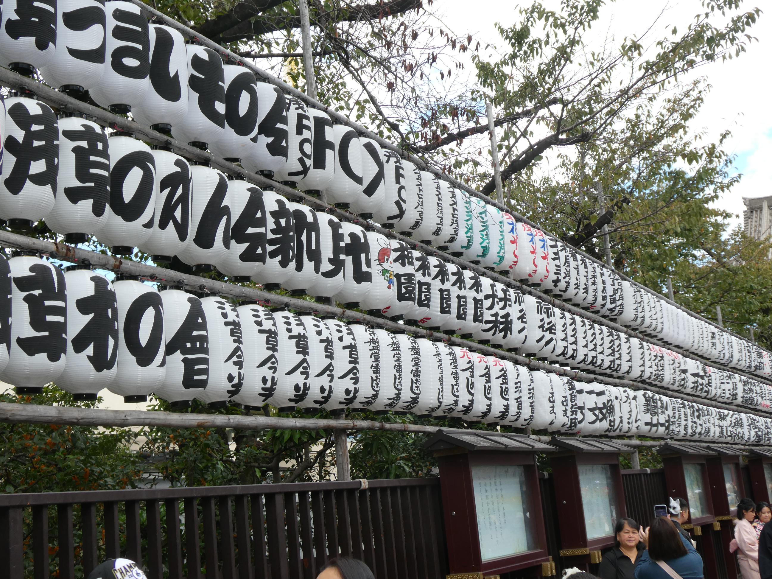 Our next stop was Asakusa Kannon Temple and Nakamise Shopping Street. The Buddhist temple is a massive wooden structure. Monks were chanting inside the temple and we were unable to enter. Our guide urged us to toss a coin and make a wish, so we did. Nearby, within the temple grounds, was a Shinto shrine, where people also lined up to make an offering and say a prayer. Our guide also encouraged us to have our photos taken standing beneath the huge lantern at the entrance to the temple complex, as it would bring good luck as long as you keep the photo in your posession. So we did. You can never have enough good luck.