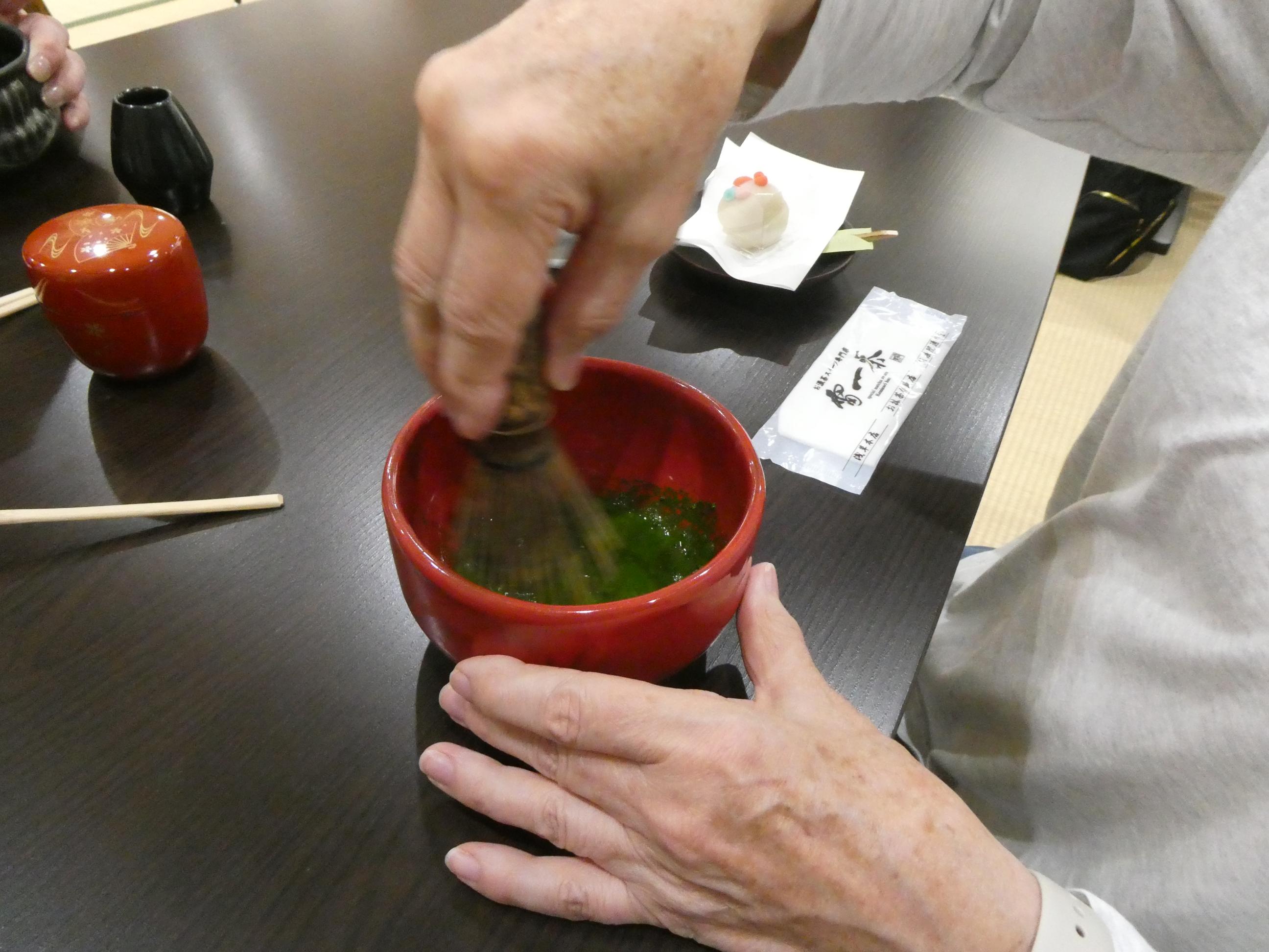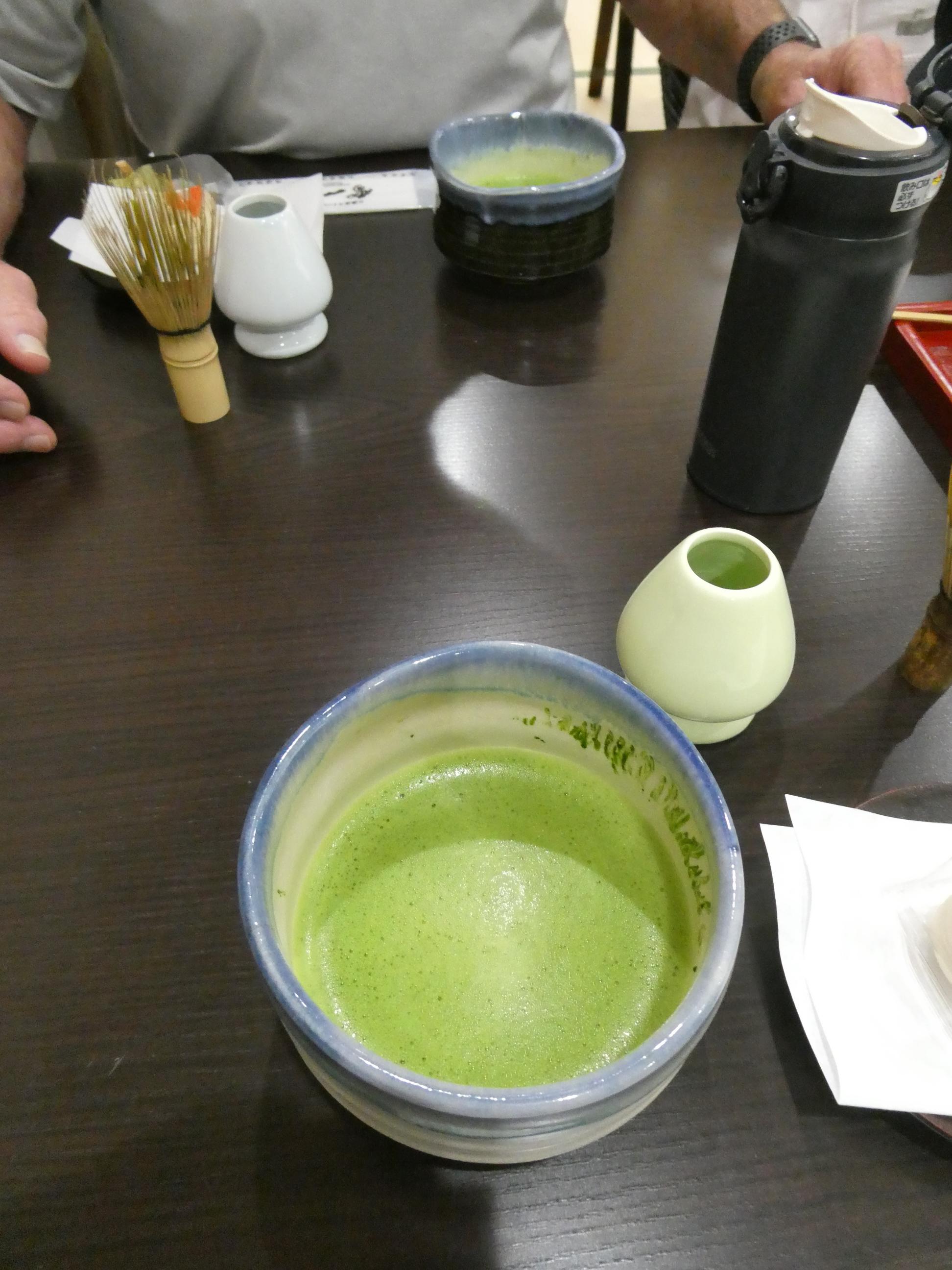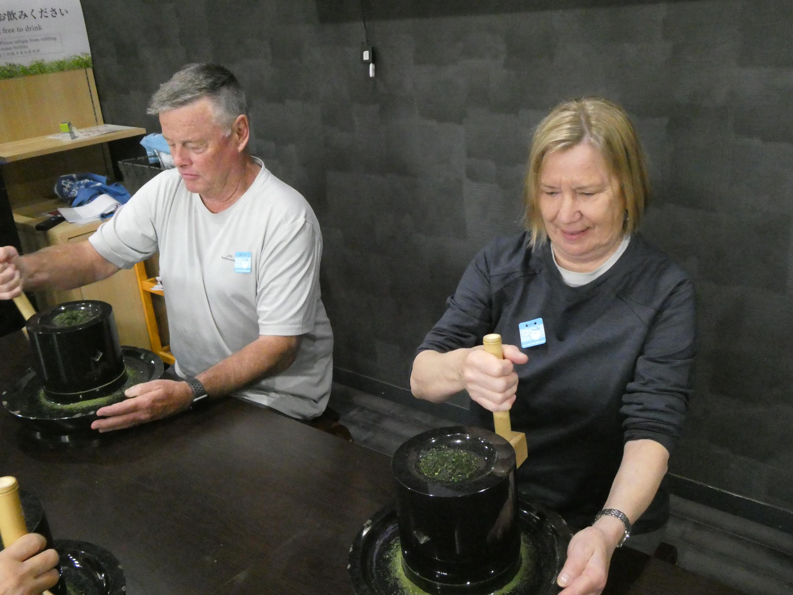 Our tour included a matcha tea experience. Thankfully this one dispensed with all the etiquette that must be observed in a proper Japanese tea ceremony, such as turning the front of the cup to face away from you before you take a sip and turning it back to face you again when you’ve finished your tea. We took turns to grind the leaves into matcha powder, then entered a tearoom (after removing our shoes) to complete the remaining steps that would turn a pile of tiny tea leaves into a foamy green beverage. Although we took some shortcuts today, apparently the whole tea making process should take about twenty minutes. We drank our tea, being sure to make a small slurping noise after our final sip as Japanese custom dictates. Matcha tea is supposed to have a number of important health benefits, but I think I’ll pass on matcha in future. It wasn’t bitter, but I still thought it was a bit of an acquired taste. I didn’t care much for the sweet that accompanied the tea either. Once is enough, I’m afraid, although I enjoyed the whole matcha experience.