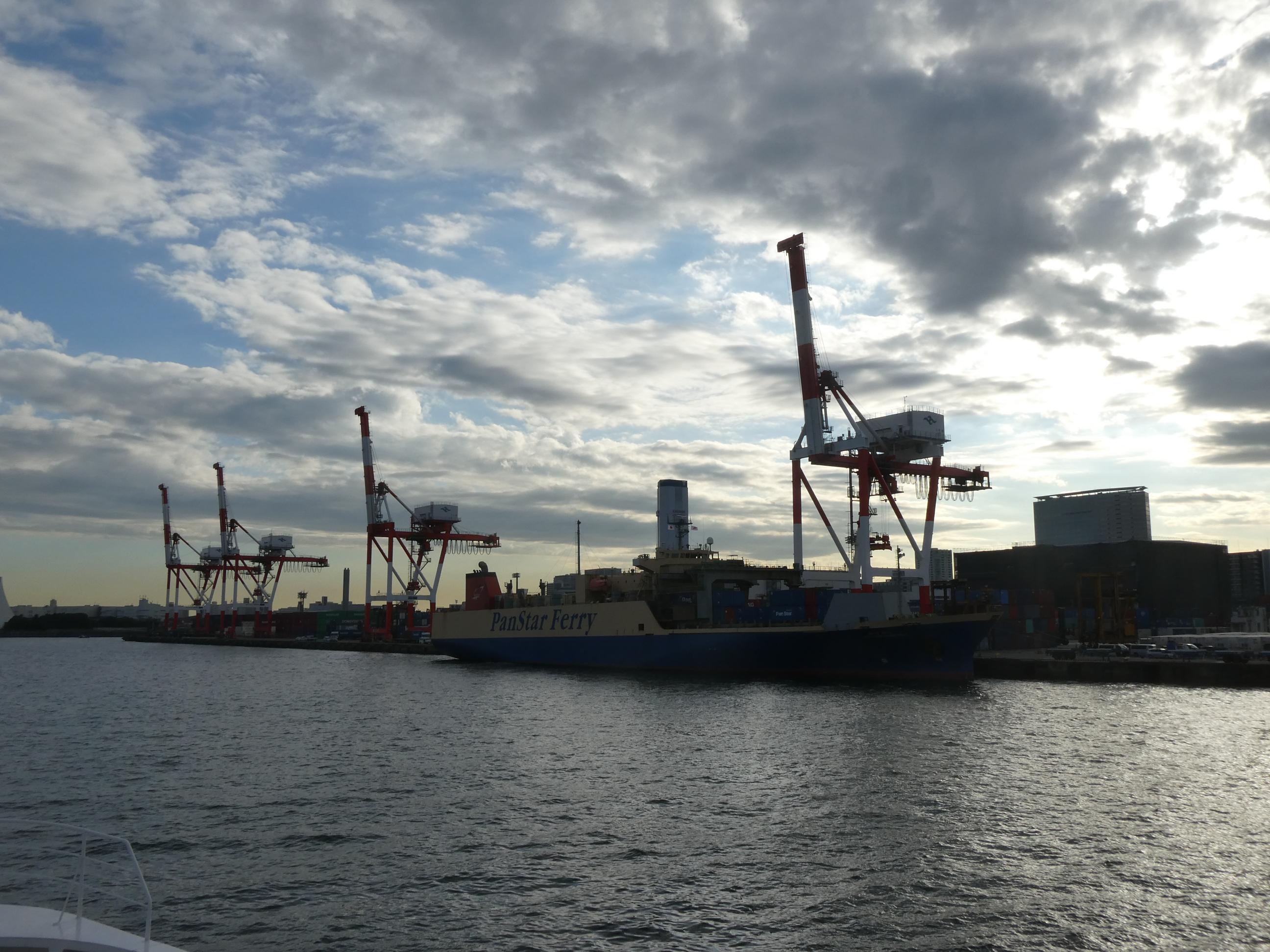 Our next stop came as a bit of a surprise, as it wasn’t listed on our original notes. We pulled up at a dock, took a quick look at an original Banksy artwork, then boarded a boat for a short cruise on the bay. Ian and I went out on deck at the front of the boat for a better view. The sun was out and the wind wasn’t strong, so it was quite pleasant out there. The boat took us under the Rainbow Bridge and along to some of the cargo docks before turning and heading back to where our bus was waiting. A saxophonist performed throughout the cruise, though I preferred to be out on deck looking at the harbour than inside watching her.