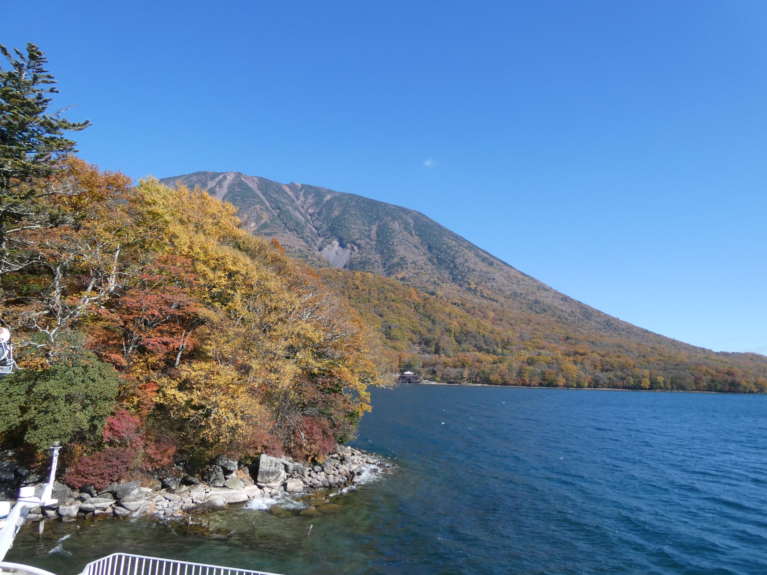 We grabbed a quick bite to eat and a coffee before boarding a boat for a 50-minute sightseeing cruise on Lake Chuzenji. It was sunny, so I went up to the top deck to take some photos. Lake Chuzenji is a naturally formed lake. Twenty thousand years ago it was a river flowing between mountains. A volcanic explosion from Mt Nantai blocked the valley below, forming a lake, the surface of which is now well over a kilometre above sea level. Mt Nantai, formerly an active volcano and now a sacred mountain, dominates the north-eastern side of the lake. It is the highest of the Nikko Mountains, rising to a height of 2486 metres above sea level. In the 8th century, Buddhist monk Shodo Shonin and his companions climbed to the summit and erected a shrine there.