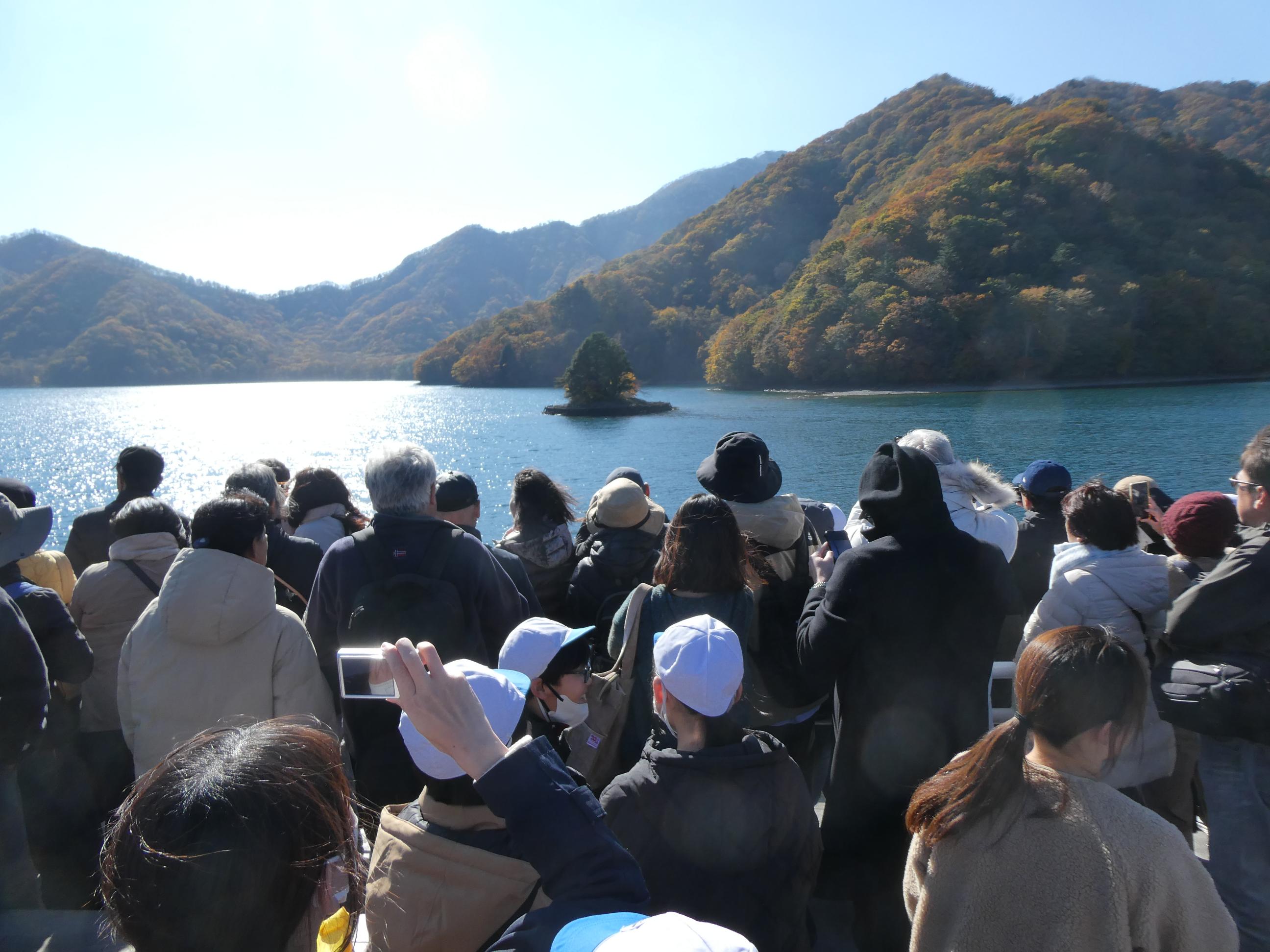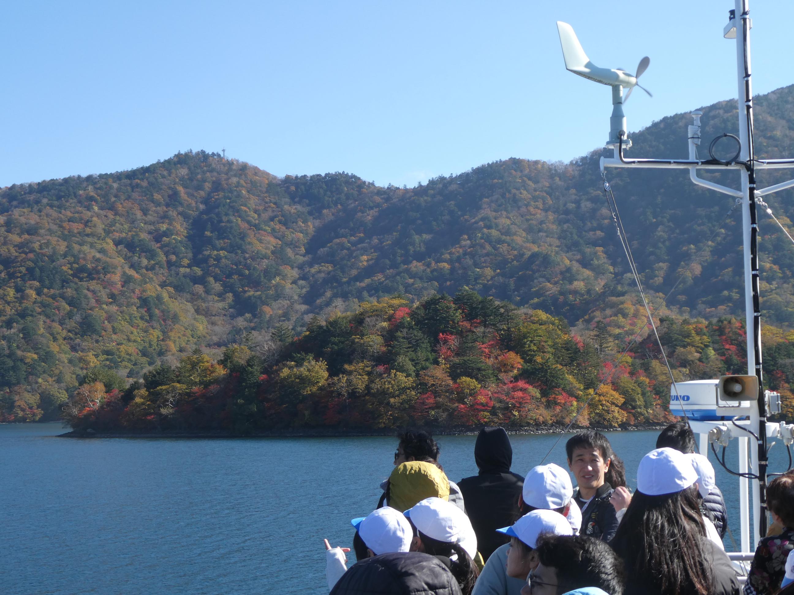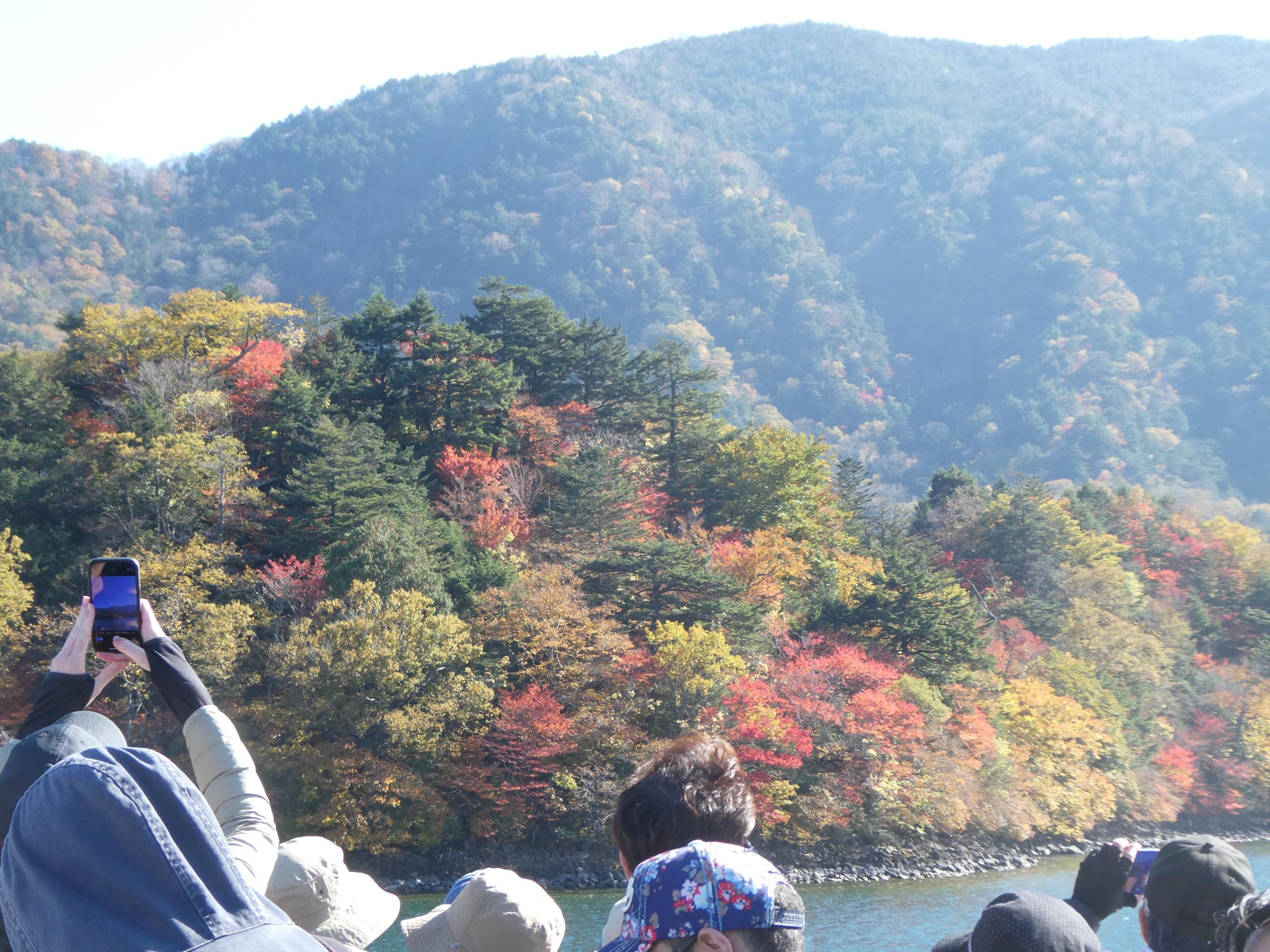 Despite the chill, the upper deck of our cruise boat was crowded with people enjoying the view and taking photos. The autumn colours on display around the lake and on the mountainside were stunning. People were calm and respectful, stepping away from the rails after a time so that others could move in to take a better photo of the autumn hues along the lake shore. Unfortunately, a group of unsupervised school kids suddenly found their way onto the upper deck. They ran between people, shouting, grabbing at each other, bumping elderly patrons, pushing and generally being unruly. It was something I wouldn’t have expected in Japan. I tried to put up with it for a while, but eventually just needed to move to a lower deck to get away from them. I used to be a lot more tolerant of kids’ behaviour when I was teaching, but today I just felt like a grumpy old man.
