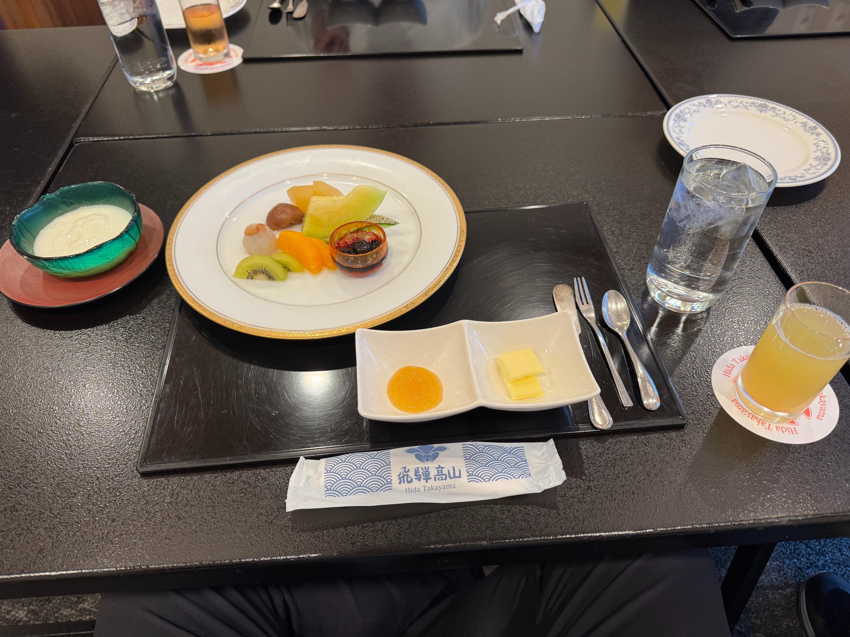 After struggling to finish the delicious ten course dinners they served in our Takayama hotel, and needing to catch an early train, we opted for the c’ontinental’ breakfast this morning, rather than the Japanese breakfast with its multiple dishes and the ‘western’ breakfast, which we’d had the previous day, but still was much more than we could eat. The first photo below is the continental breakfast (minus the toast, which was already in the toaster). I was expecting a slice of bread and a little box of Rice Bubbles, but even their continental breakfast looks classy when it’s served. Every meal at this hotel is served in our own private room by ladies in traditional dress (and sometimes by an engaging young man from Myanmar). I really enjoyed staying at the Honjin Hiranoya Bekkan, even though I struggled with the Japanese bedding on the first night. The staff and facilities are wonderful. We never got around to trying the onsen, though they gave each of us a traditional Japanese outfit to wear – some patrons even wore this gear to dinner.