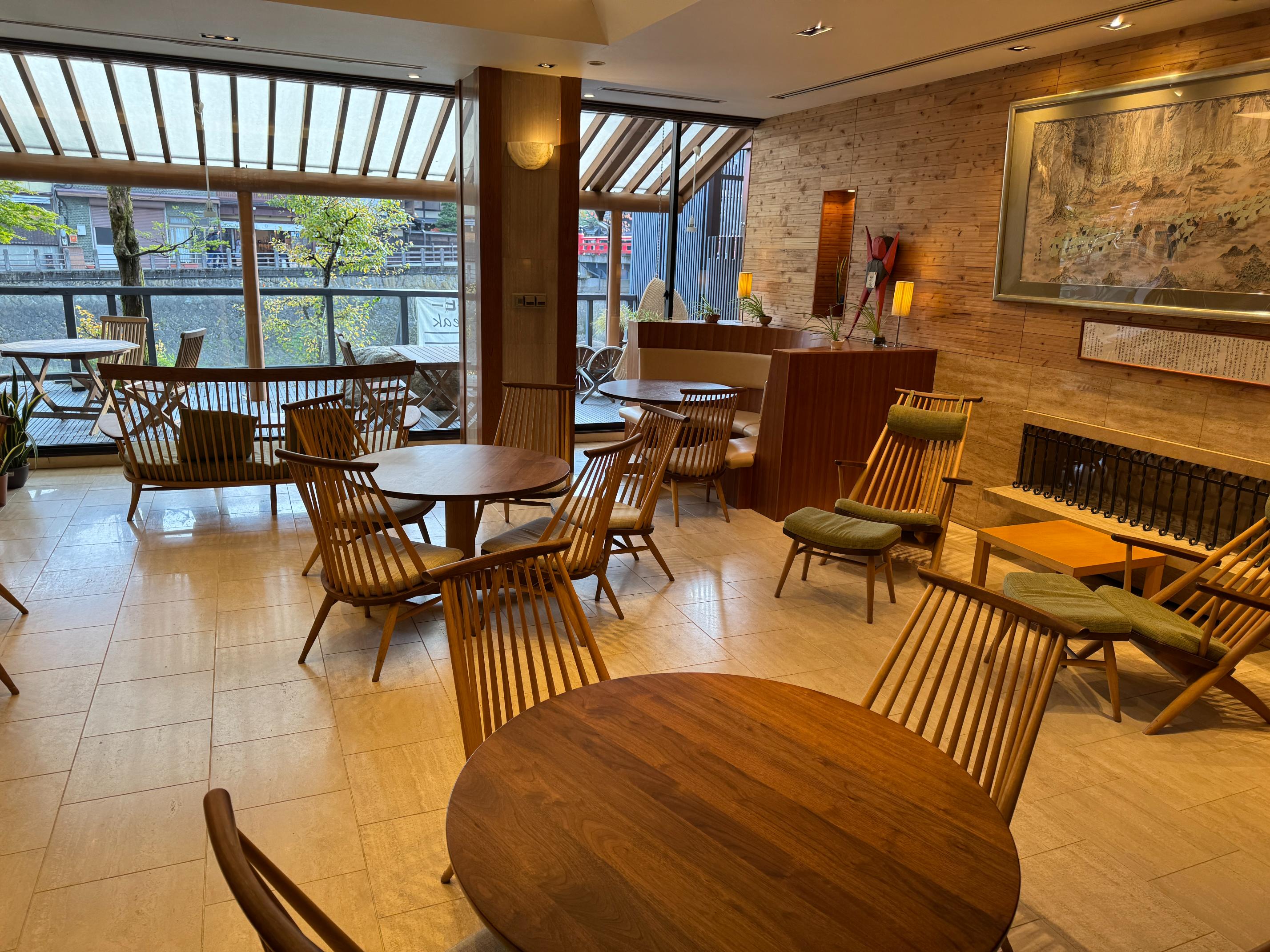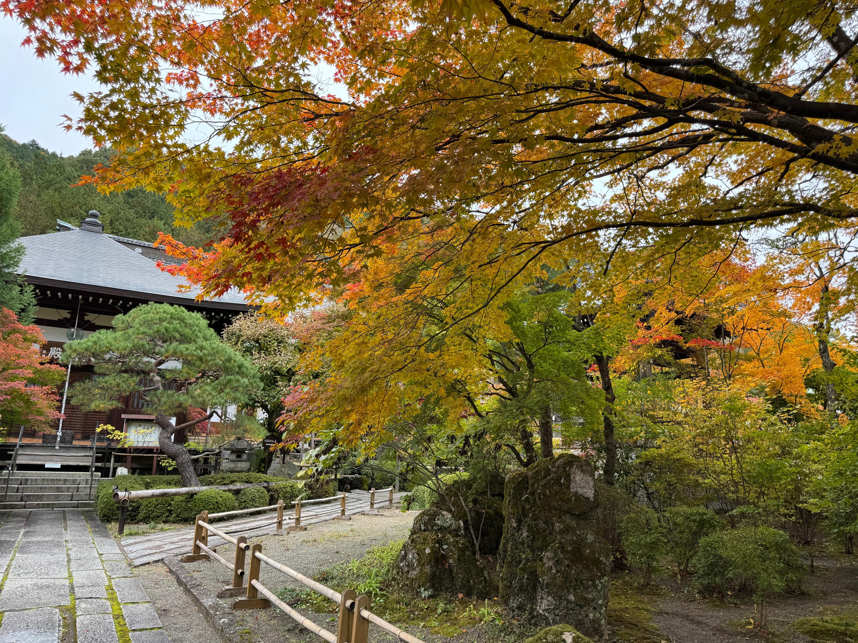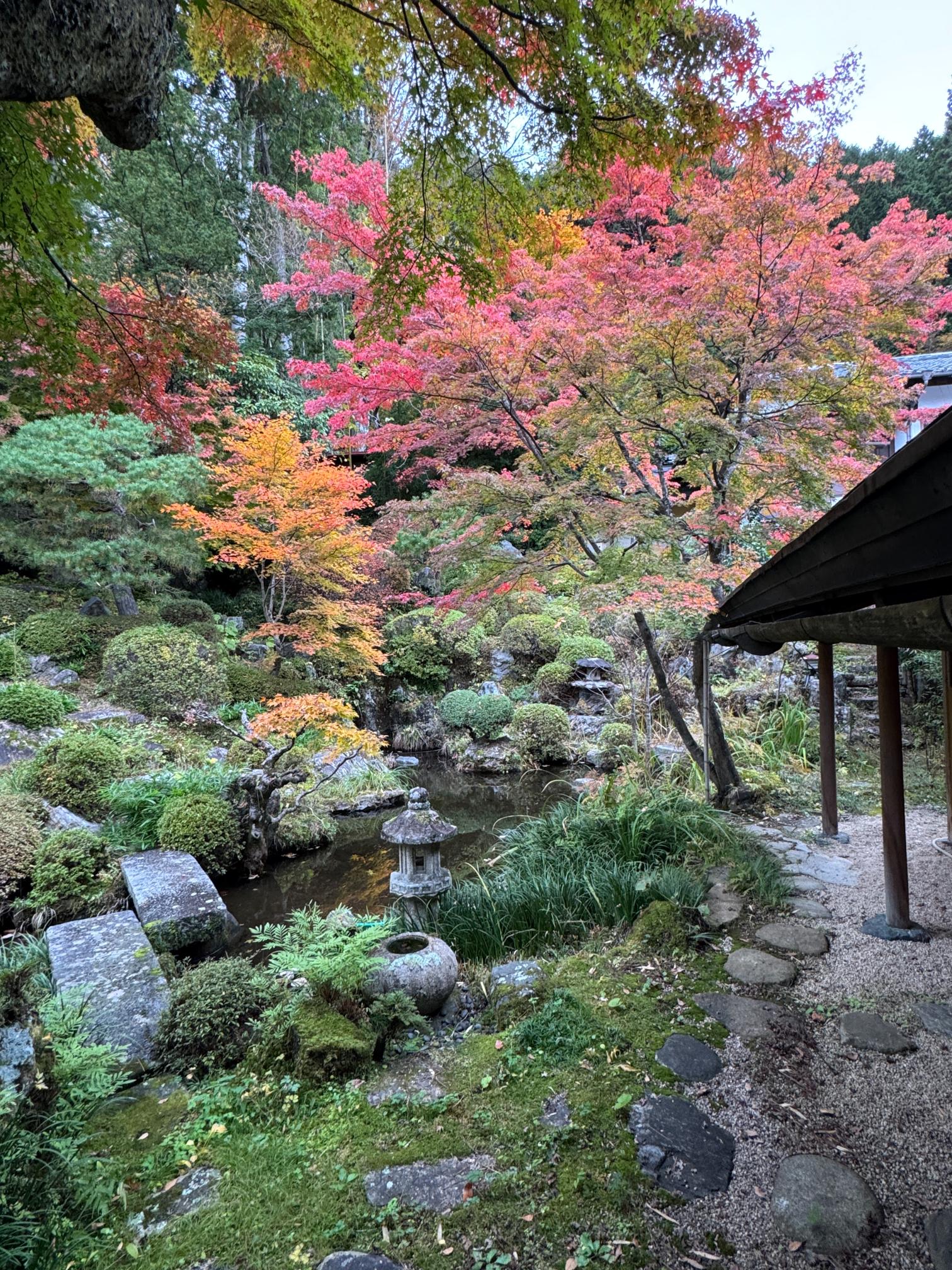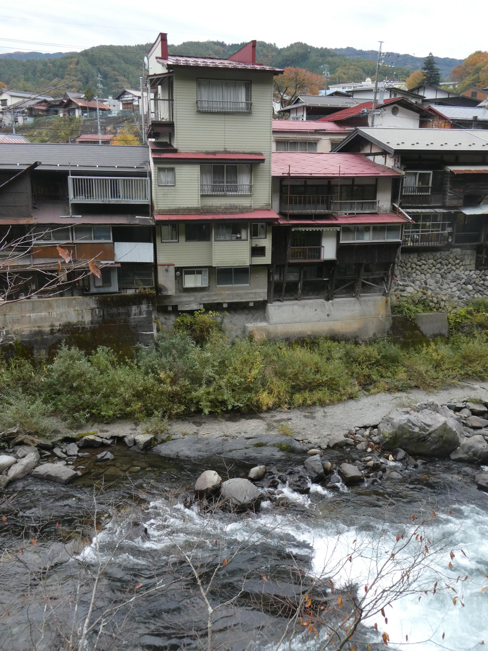 We took a taxi to our hotel. It’s quite some way out of town, in the mountains, surrounded by autumn foliage and in the shadow of snow capped mountains. It’s Japanese style accommodation again, known as a ryokan. This one is a little more comfortable than the last one in terms of me working on this blog. For the past few nights I was sitting on a foot stool with no table, balancing my Macbook on my knees. Today, I was able to fashion a chair out of a small table and use the box holding the tea cups as a makeshift desk. We’ll sleep on the futons again tonight, but we’ve added an extra futon beneath what was laid out for us, so I’m hoping for a little more comfort for my aging bones.