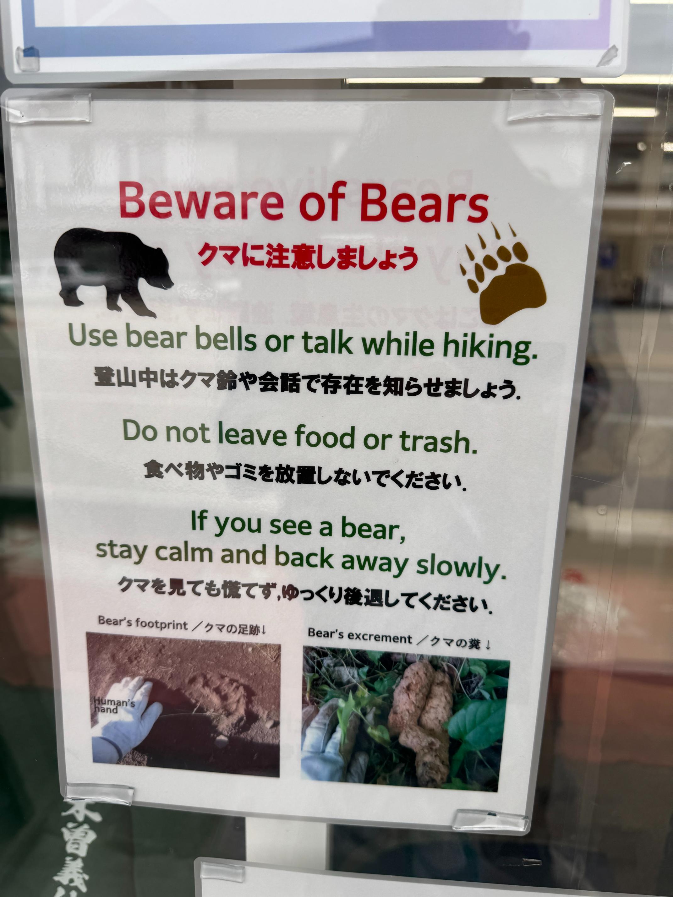 Our first train journey was almost two hours. It took us at a leisurely pace through the mountains, following the course of a river. The scenery was beautiful. The Japanese seem to always tunnel through mountains for their roads and railway lines, rather than winding around them. It’s very different to other parts of the world where you can look out one side of the train or car and see a steep drop to a valley way below and sometimes have to hold your breath on tight corners. In Japan, we just come to a mountain and basically go straight through it in a tunnel and emerge into the sunlight on the far side. Given the destruction this country had to recover from after the Second World War, and the constant threat of natural disasters, it’s remarkable how impressive their infrastructure is. Their roads and rail networks have been fantastic.