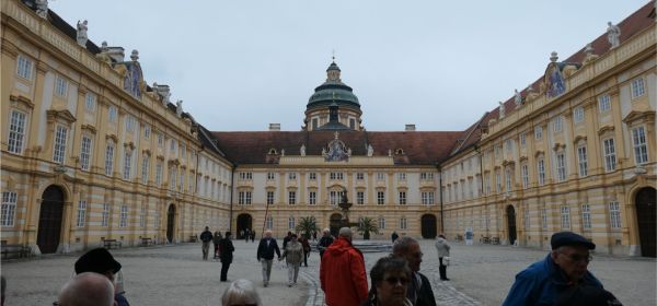 Patrons on our cruise were offered a choice of visiting a winery or a Benedictine abbey. We chose Melk Abbey, located on a hilltop overlooking