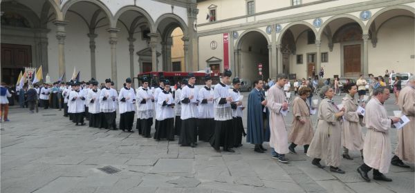 Marg and I walked out of the Innocenti Museum and were crossing the piazza when we noticed others going in through the large door of